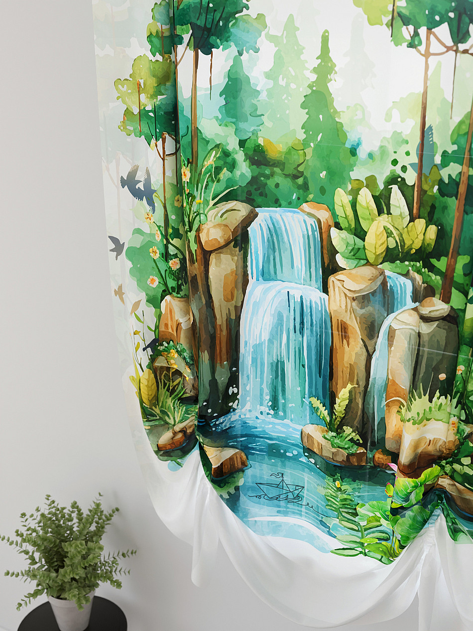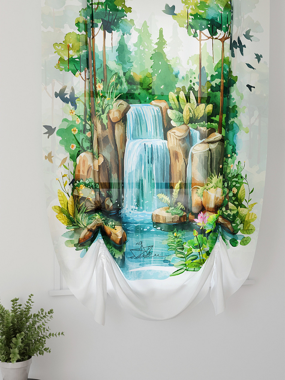 ВыбратьТюль 1 шт. Легкий, мягкий тюль из вуали оформлен фотопечатью, дополнен отделкой в виде декоративных завязок. Тюль имитирует австрийскую штору. Вуаль с матовой полупрозрачной текстурой. Отличается особым шиком, идеально подходит для создания воздушных штор. Придает ощущение свежести, хорошо пропускает воздух. Ткань неприхотлива в уходе, хорошо стирается без разрушения волокон с течением времени за счет высокого кручения нитей.