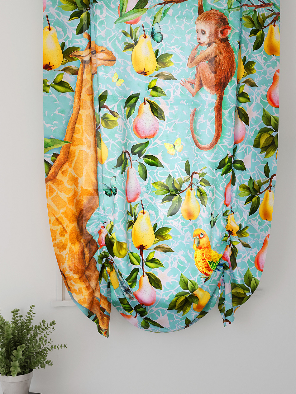 ВыбратьТюль 1 шт. Легкий, мягкий тюль из вуали оформлен фотопечатью, дополнен отделкой в виде декоративных завязок. Тюль имитирует австрийскую штору. Вуаль с матовой полупрозрачной текстурой. Отличается особым шиком, идеально подходит для создания воздушных штор. Придает ощущение свежести, хорошо пропускает воздух. Ткань неприхотлива в уходе, хорошо стирается без разрушения волокон с течением времени за счет высокого кручения нитей.