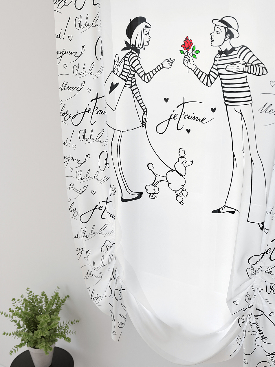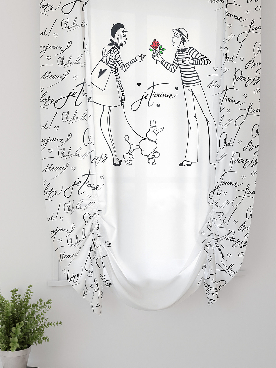 - Вуаль портьеры для кухни с принтом