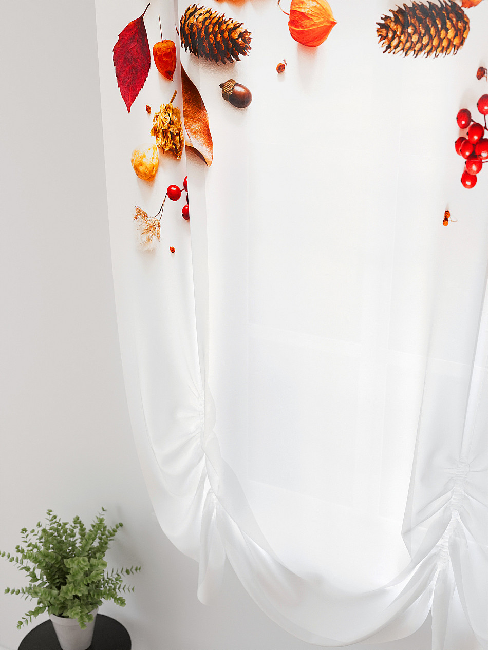 ВыбратьТюль 1 шт. Легкий, мягкий тюль из вуали оформлен фотопечатью, дополнен отделкой в виде декоративных завязок. Тюль имитирует австрийскую штору. Вуаль с матовой полупрозрачной текстурой. Отличается особым шиком, идеально подходит для создания воздушных штор. Придает ощущение свежести, хорошо пропускает воздух. Ткань неприхотлива в уходе, хорошо стирается без разрушения волокон с течением времени за счет высокого кручения нитей.