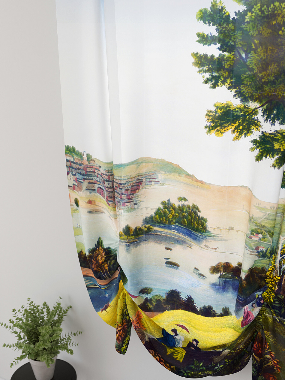 - Вуаль портьера для комнаты с принтом