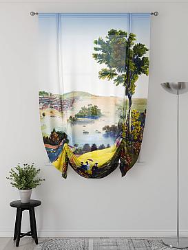 ВыбратьТюль 1 шт. Легкий, мягкий тюль из вуали оформлен фотопечатью, дополнен отделкой в виде декоративных завязок. Тюль имитирует австрийскую штору. Вуаль с матовой полупрозрачной текстурой. Отличается особым шиком, идеально подходит для создания воздушных штор. Придает ощущение свежести, хорошо пропускает воздух. Ткань неприхотлива в уходе, хорошо стирается без разрушения волокон с течением времени за счет высокого кручения нитей.