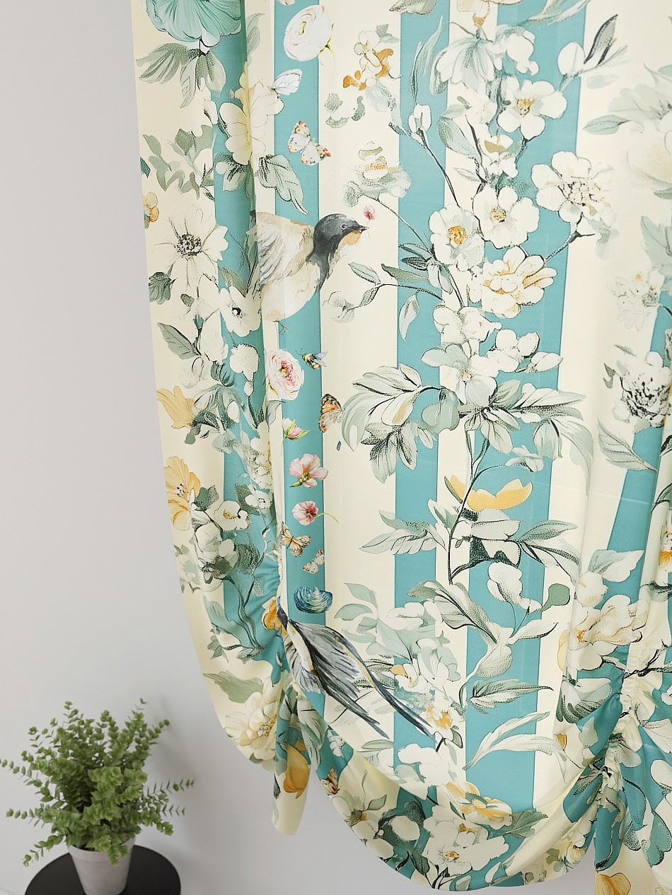 ВыбратьТюль 1 шт. Легкий, мягкий тюль из вуали оформлен фотопечатью, дополнен отделкой в виде декоративных завязок. Тюль имитирует австрийскую штору. Вуаль с матовой полупрозрачной текстурой. Отличается особым шиком, идеально подходит для создания воздушных штор. Придает ощущение свежести, хорошо пропускает воздух. Ткань неприхотлива в уходе, хорошо стирается без разрушения волокон с течением времени за счет высокого кручения нитей.