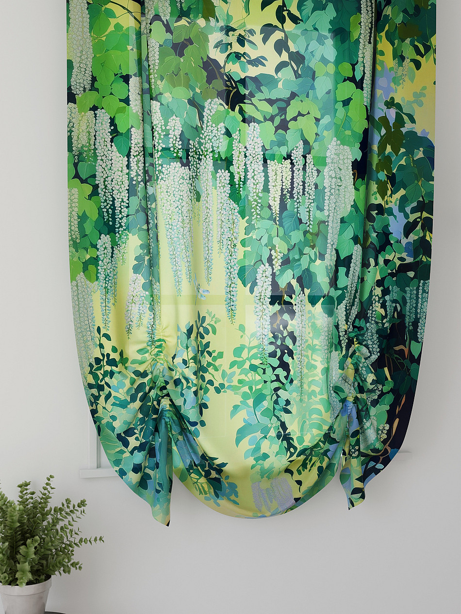 ВыбратьТюль 1 шт. Легкий, мягкий тюль из вуали оформлен фотопечатью, дополнен отделкой в виде декоративных завязок. Тюль имитирует австрийскую штору. Вуаль с матовой полупрозрачной текстурой. Отличается особым шиком, идеально подходит для создания воздушных штор. Придает ощущение свежести, хорошо пропускает воздух. Ткань неприхотлива в уходе, хорошо стирается без разрушения волокон с течением времени за счет высокого кручения нитей.