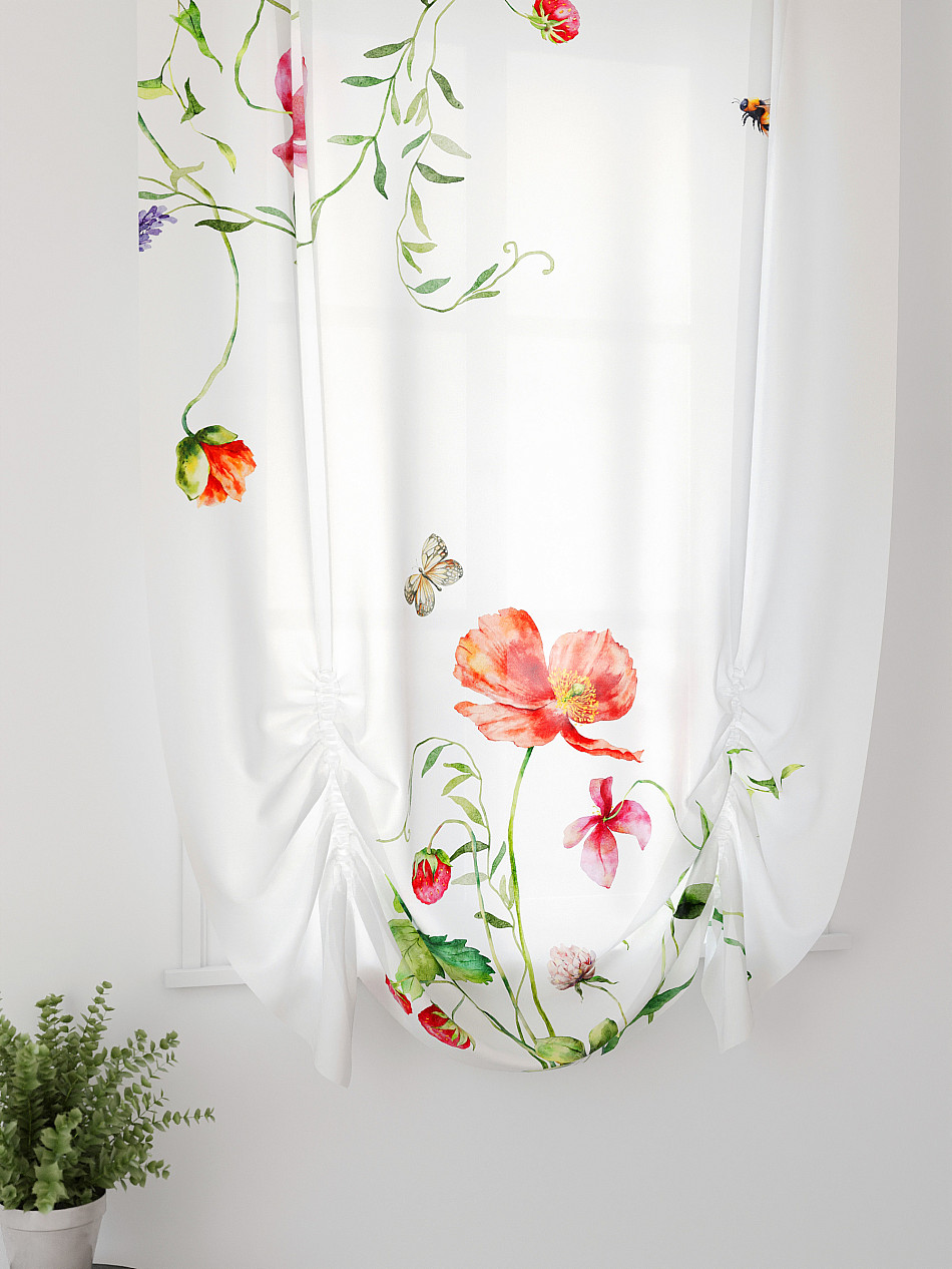 ВыбратьТюль 1 шт. Легкий, мягкий тюль из вуали оформлен фотопечатью, дополнен отделкой в виде декоративных завязок. Тюль имитирует австрийскую штору. Вуаль с матовой полупрозрачной текстурой. Отличается особым шиком, идеально подходит для создания воздушных штор. Придает ощущение свежести, хорошо пропускает воздух. Ткань неприхотлива в уходе, хорошо стирается без разрушения волокон с течением времени за счет высокого кручения нитей.