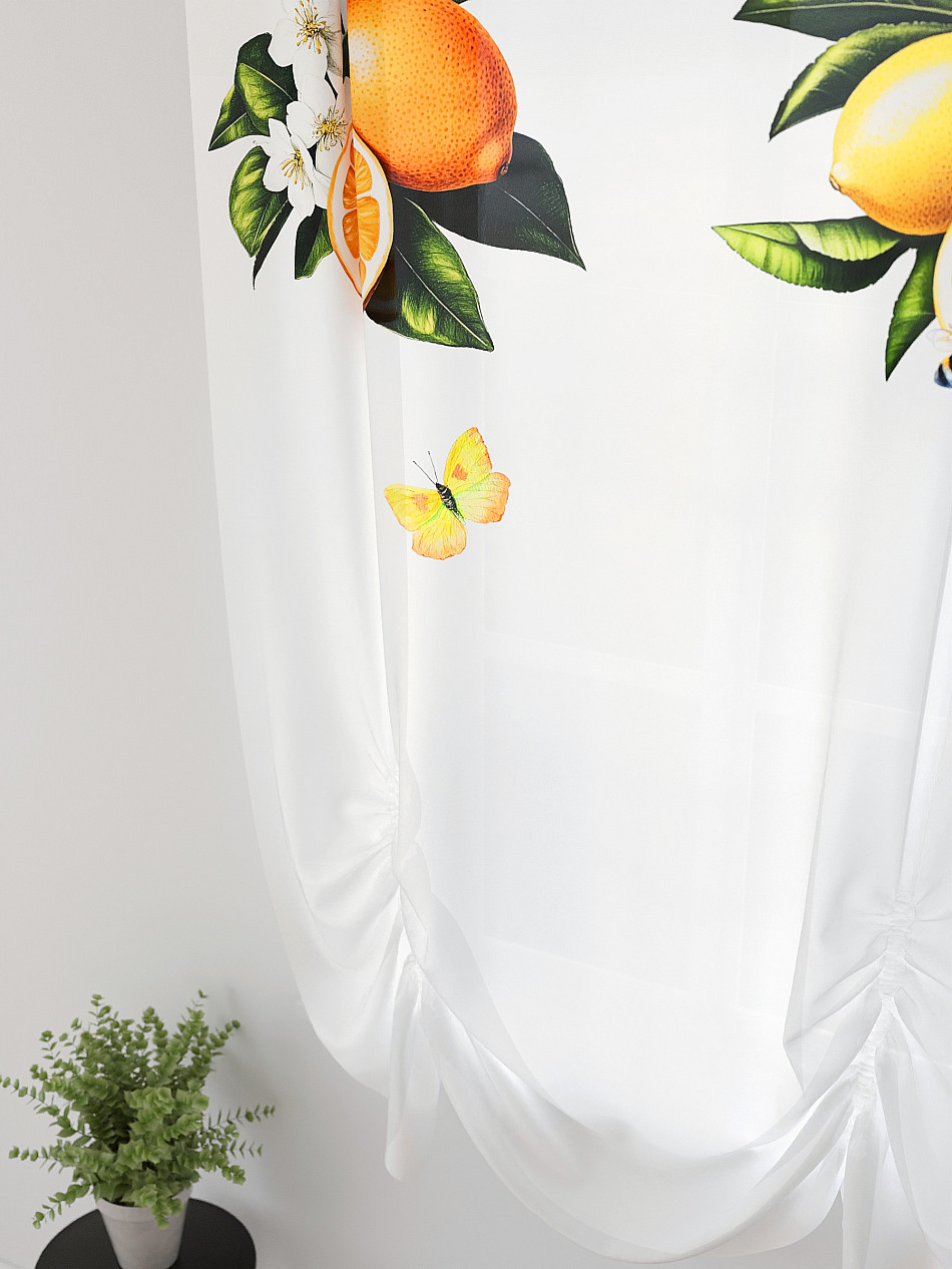 ВыбратьТюль 1 шт. Легкий, мягкий тюль из вуали оформлен фотопечатью, дополнен отделкой в виде декоративных завязок. Тюль имитирует австрийскую штору. Вуаль с матовой полупрозрачной текстурой. Отличается особым шиком, идеально подходит для создания воздушных штор. Придает ощущение свежести, хорошо пропускает воздух. Ткань неприхотлива в уходе, хорошо стирается без разрушения волокон с течением времени за счет высокого кручения нитей.