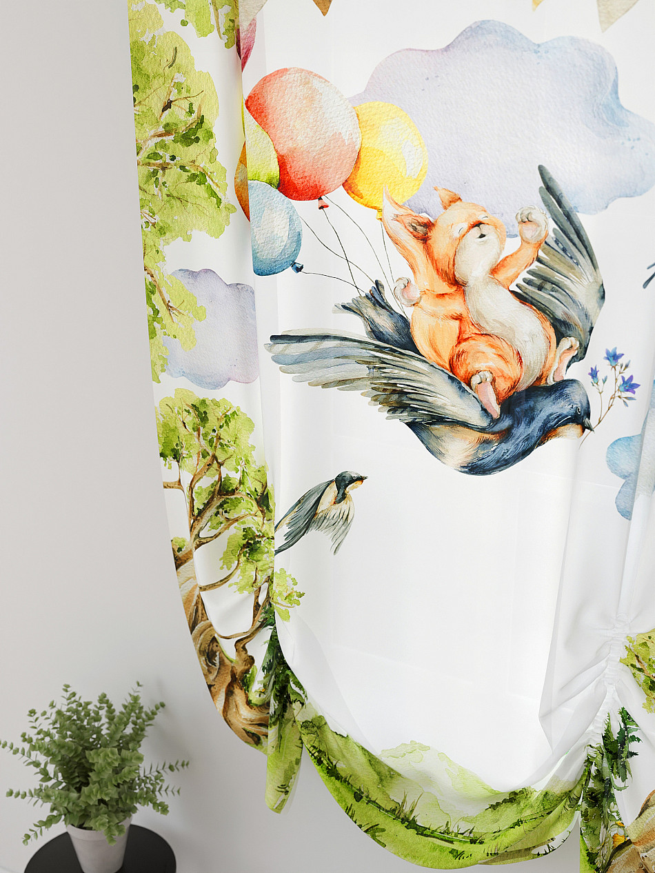 ВыбратьТюль 1 шт. Легкий, мягкий тюль из вуали оформлен фотопечатью, дополнен отделкой в виде декоративных завязок. Тюль имитирует австрийскую штору. Вуаль с матовой полупрозрачной текстурой. Отличается особым шиком, идеально подходит для создания воздушных штор. Придает ощущение свежести, хорошо пропускает воздух. Ткань неприхотлива в уходе, хорошо стирается без разрушения волокон с течением времени за счет высокого кручения нитей.