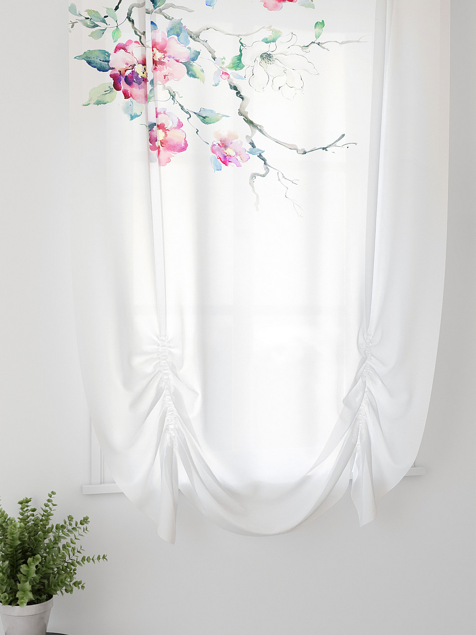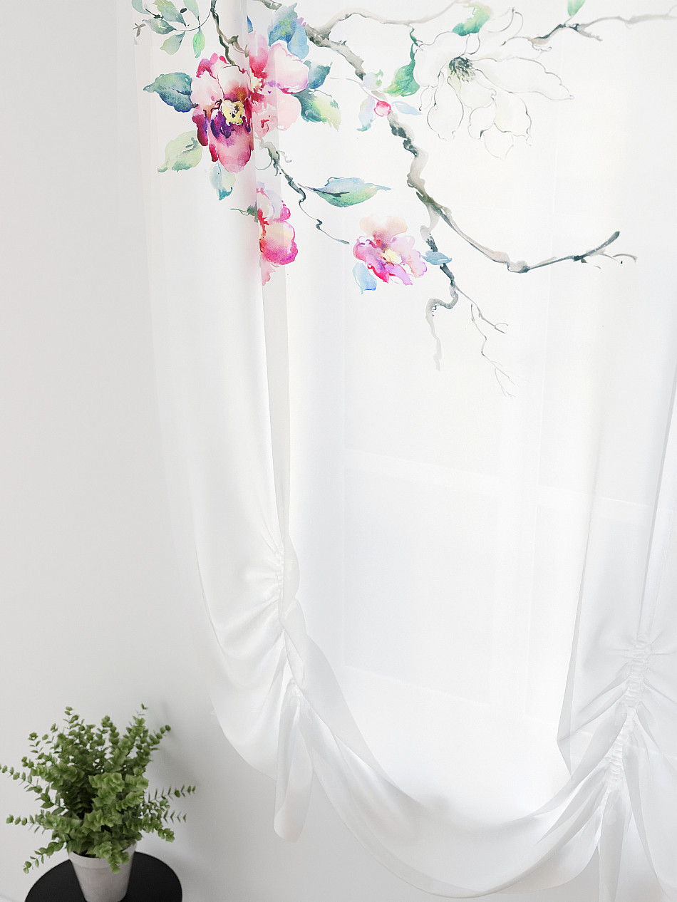 ВыбратьТюль 1 шт. Легкий, мягкий тюль из вуали оформлен фотопечатью, дополнен отделкой в виде декоративных завязок. Тюль имитирует австрийскую штору. Вуаль с матовой полупрозрачной текстурой. Отличается особым шиком, идеально подходит для создания воздушных штор. Придает ощущение свежести, хорошо пропускает воздух. Ткань неприхотлива в уходе, хорошо стирается без разрушения волокон с течением времени за счет высокого кручения нитей.