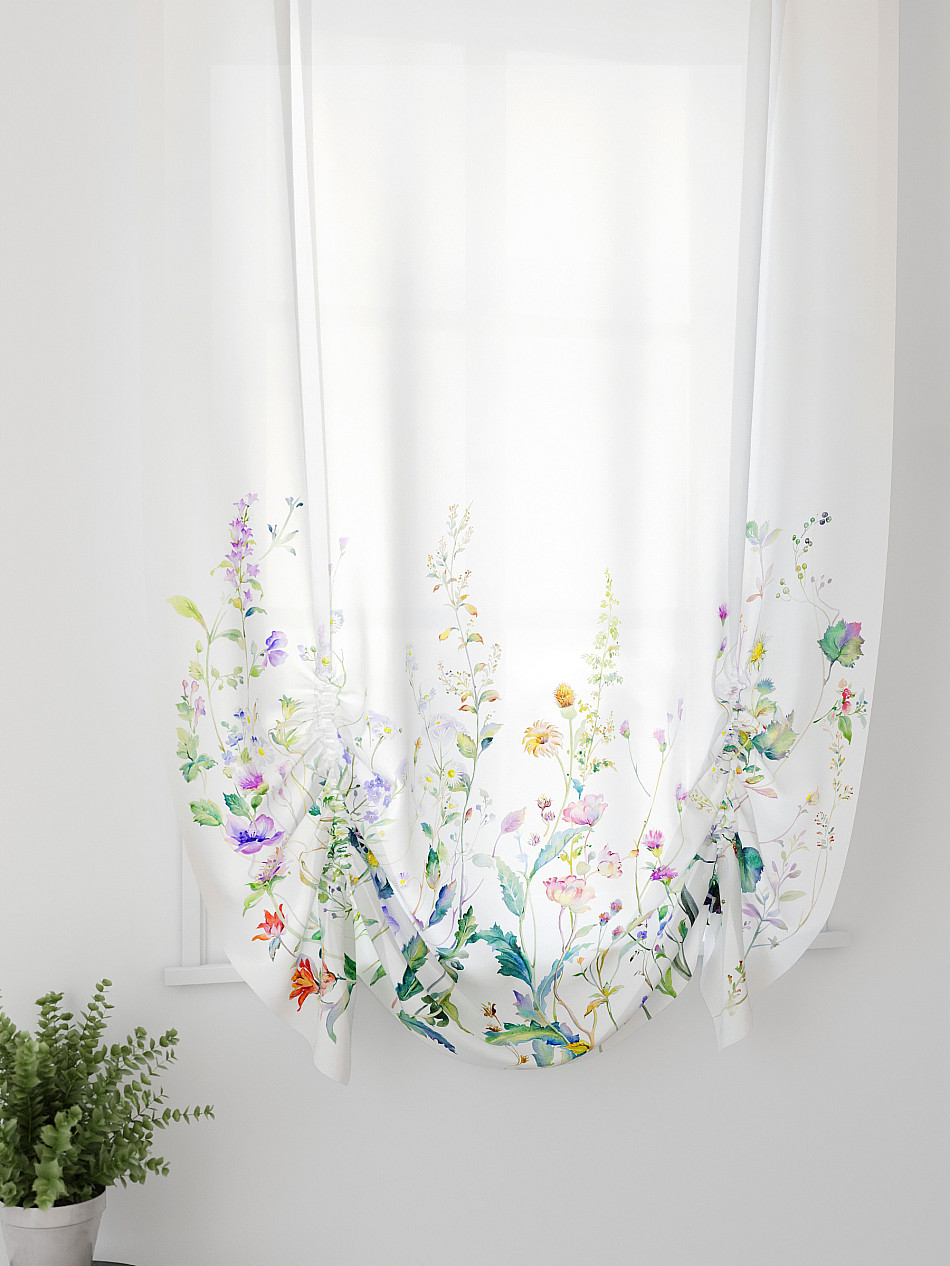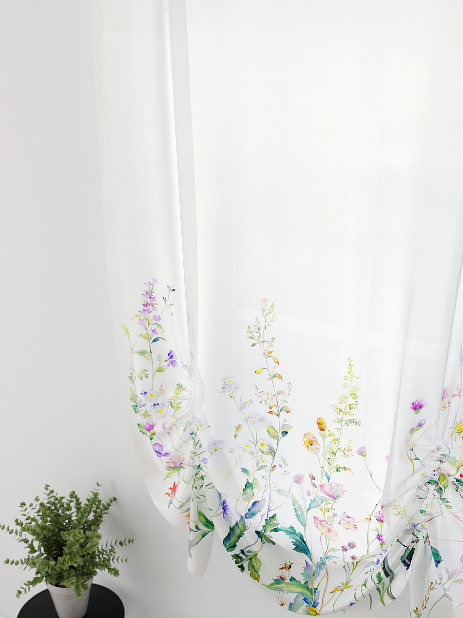 ВыбратьТюль 1 шт. Легкий, мягкий тюль из вуали оформлен фотопечатью, дополнен отделкой в виде декоративных завязок. Тюль имитирует австрийскую штору. Вуаль с матовой полупрозрачной текстурой. Отличается особым шиком, идеально подходит для создания воздушных штор. Придает ощущение свежести, хорошо пропускает воздух. Ткань неприхотлива в уходе, хорошо стирается без разрушения волокон с течением времени за счет высокого кручения нитей.