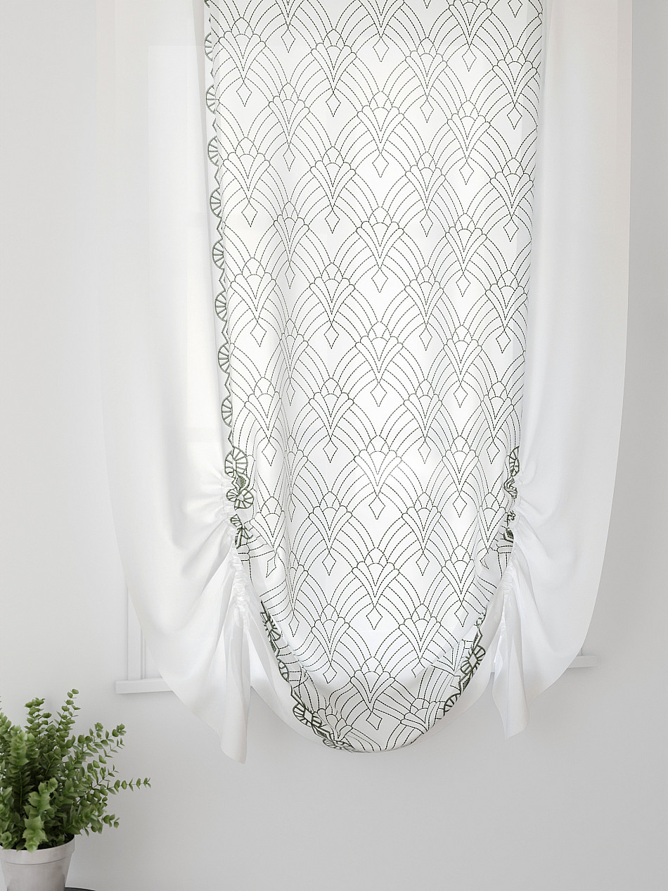 ВыбратьТюль 1 шт. Легкий, мягкий тюль из вуали оформлен фотопечатью, дополнен отделкой в виде декоративных завязок. Тюль имитирует австрийскую штору. Вуаль с матовой полупрозрачной текстурой. Отличается особым шиком, идеально подходит для создания воздушных штор. Придает ощущение свежести, хорошо пропускает воздух. Ткань неприхотлива в уходе, хорошо стирается без разрушения волокон с течением времени за счет высокого кручения нитей.