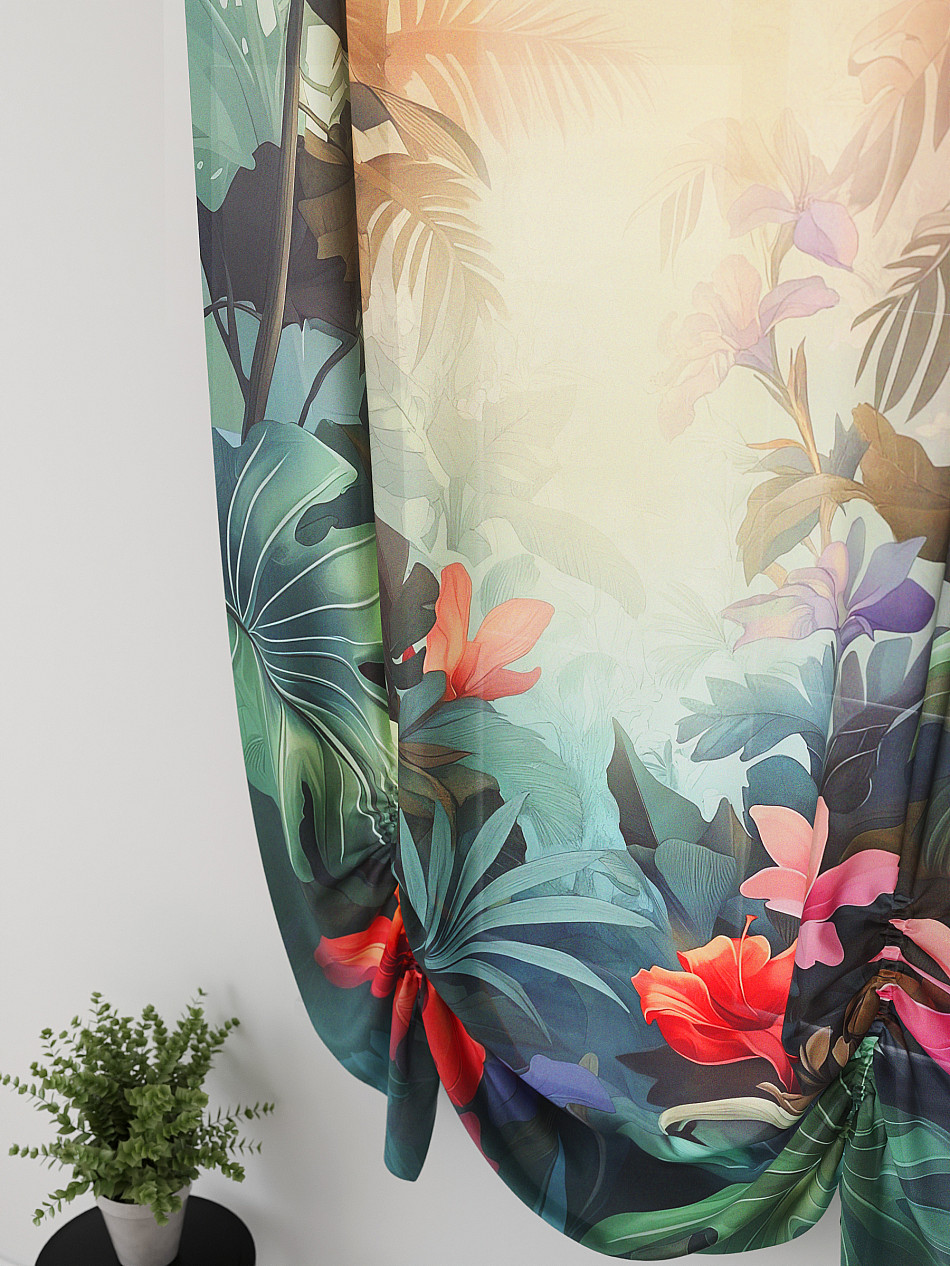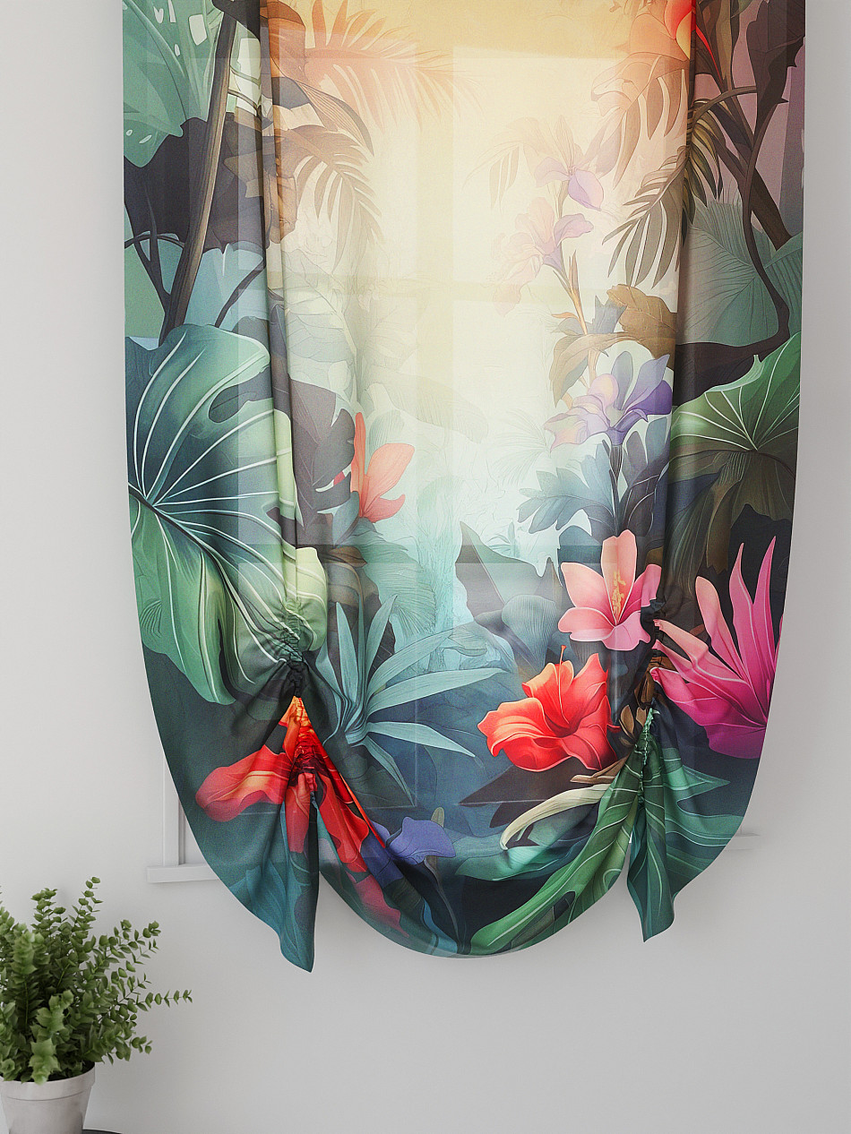 ВыбратьТюль 1 шт. Легкий, мягкий тюль из вуали оформлен фотопечатью, дополнен отделкой в виде декоративных завязок. Тюль имитирует австрийскую штору. Вуаль с матовой полупрозрачной текстурой. Отличается особым шиком, идеально подходит для создания воздушных штор. Придает ощущение свежести, хорошо пропускает воздух. Ткань неприхотлива в уходе, хорошо стирается без разрушения волокон с течением времени за счет высокого кручения нитей.
