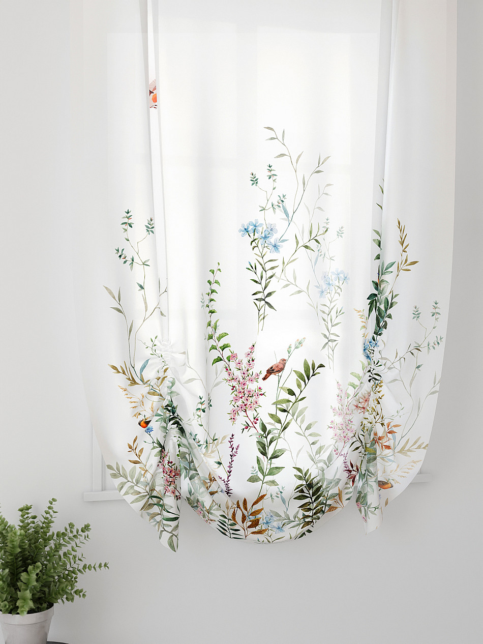 ВыбратьТюль 1 шт. Легкий, мягкий тюль из вуали оформлен фотопечатью, дополнен отделкой в виде декоративных завязок. Тюль имитирует австрийскую штору. Вуаль с матовой полупрозрачной текстурой. Отличается особым шиком, идеально подходит для создания воздушных штор. Придает ощущение свежести, хорошо пропускает воздух. Ткань неприхотлива в уходе, хорошо стирается без разрушения волокон с течением времени за счет высокого кручения нитей.