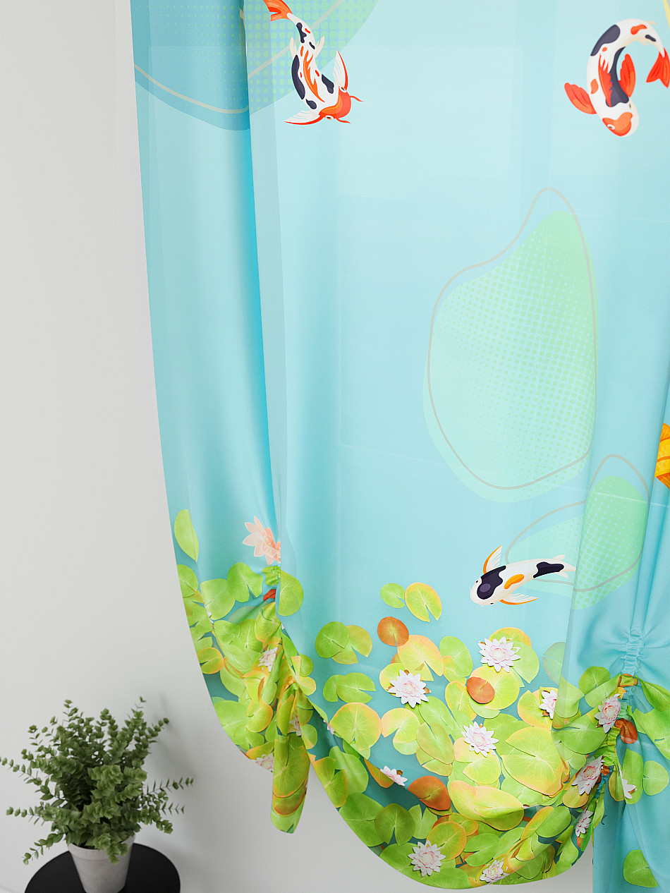 ВыбратьТюль 1 шт. Легкий, мягкий тюль из вуали оформлен фотопечатью, дополнен отделкой в виде декоративных завязок. Тюль имитирует австрийскую штору. Вуаль с матовой полупрозрачной текстурой. Отличается особым шиком, идеально подходит для создания воздушных штор. Придает ощущение свежести, хорошо пропускает воздух. Ткань неприхотлива в уходе, хорошо стирается без разрушения волокон с течением времени за счет высокого кручения нитей.