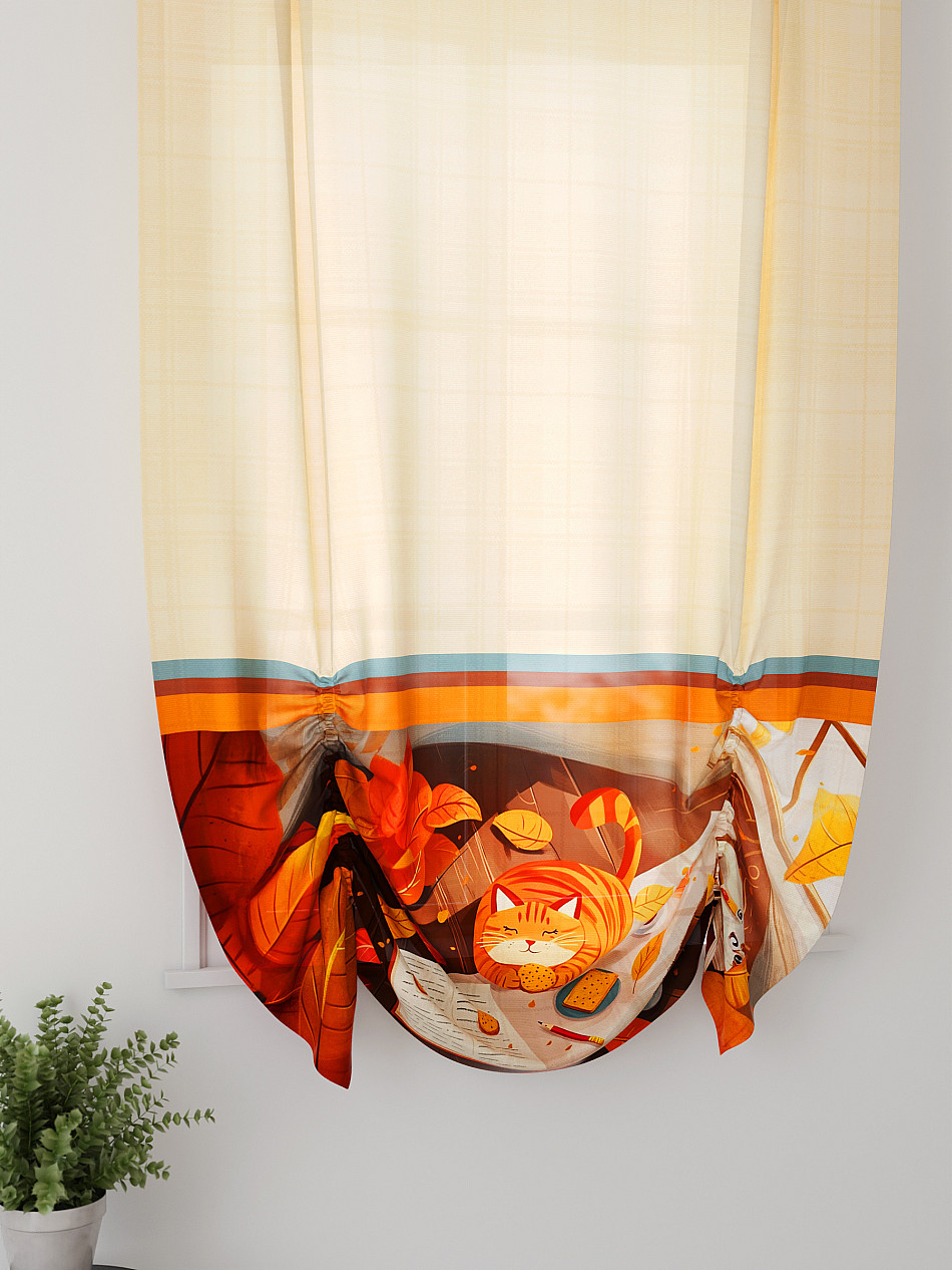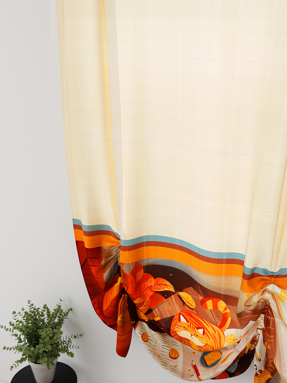 ВыбратьТюль 1 шт. Легкий, мягкий тюль из вуали оформлен фотопечатью, дополнен отделкой в виде декоративных завязок. Тюль имитирует австрийскую штору. Вуаль с матовой полупрозрачной текстурой. Отличается особым шиком, идеально подходит для создания воздушных штор. Придает ощущение свежести, хорошо пропускает воздух. Ткань неприхотлива в уходе, хорошо стирается без разрушения волокон с течением времени за счет высокого кручения нитей.