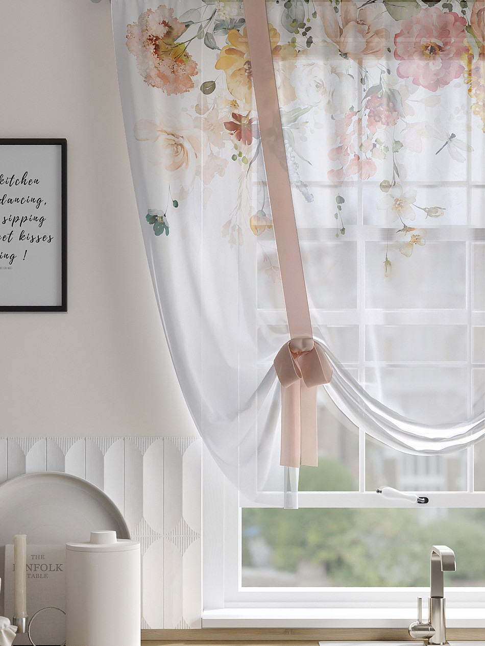 ВыбратьТюль 1 шт. Легкий, мягкий тюль из вуали оформлен фотопечатью, дополнен отделкой в виде декоративных завязок. Тюль имитирует римскую штору. Подъем и опускание осуществляется за счет декоративных лент. Вуаль с матовой полупрозрачной текстурой. Отличается особым шиком, идеально подходит для создания воздушных штор. Придает ощущение свежести, хорошо пропускает воздух. Ткань неприхотлива в уходе, хорошо стирается без разрушения волокон с течением времени за счет высокого кручения нитей.
