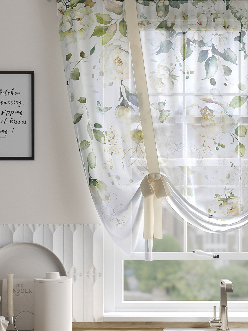 ВыбратьТюль 1 шт. Легкий, мягкий тюль из вуали оформлен фотопечатью, дополнен отделкой в виде декоративных завязок. Тюль имитирует римскую штору. Подъем и опускание осуществляется за счет декоративных лент. Вуаль с матовой полупрозрачной текстурой. Отличается особым шиком, идеально подходит для создания воздушных штор. Придает ощущение свежести, хорошо пропускает воздух. Ткань неприхотлива в уходе, хорошо стирается без разрушения волокон с течением времени за счет высокого кручения нитей.