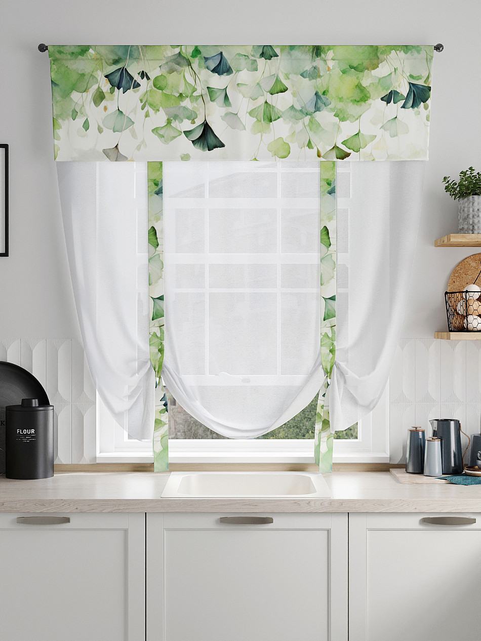 ВыбратьТюль 1 шт. Легкий, мягкий тюль из вуали дополнен отделкой в виде декоративных завязок и ламбрекеном, оформленным фотопечатью. Тюль имитирует римскую штору. Подъем и опускание осуществляется за счет декоративных лент. Вуаль с матовой полупрозрачной текстурой. Отличается особым шиком, идеально подходит для создания воздушных штор. Придает ощущение свежести, хорошо пропускает воздух. Ткань неприхотлива в уходе, хорошо стирается без разрушения волокон с течением времени за счет высокого кручения нитей.