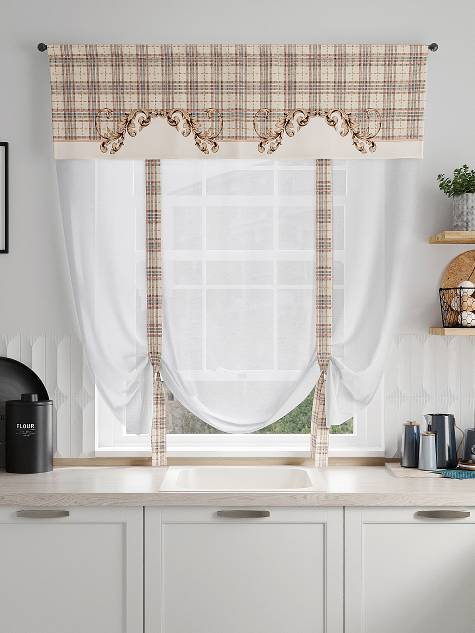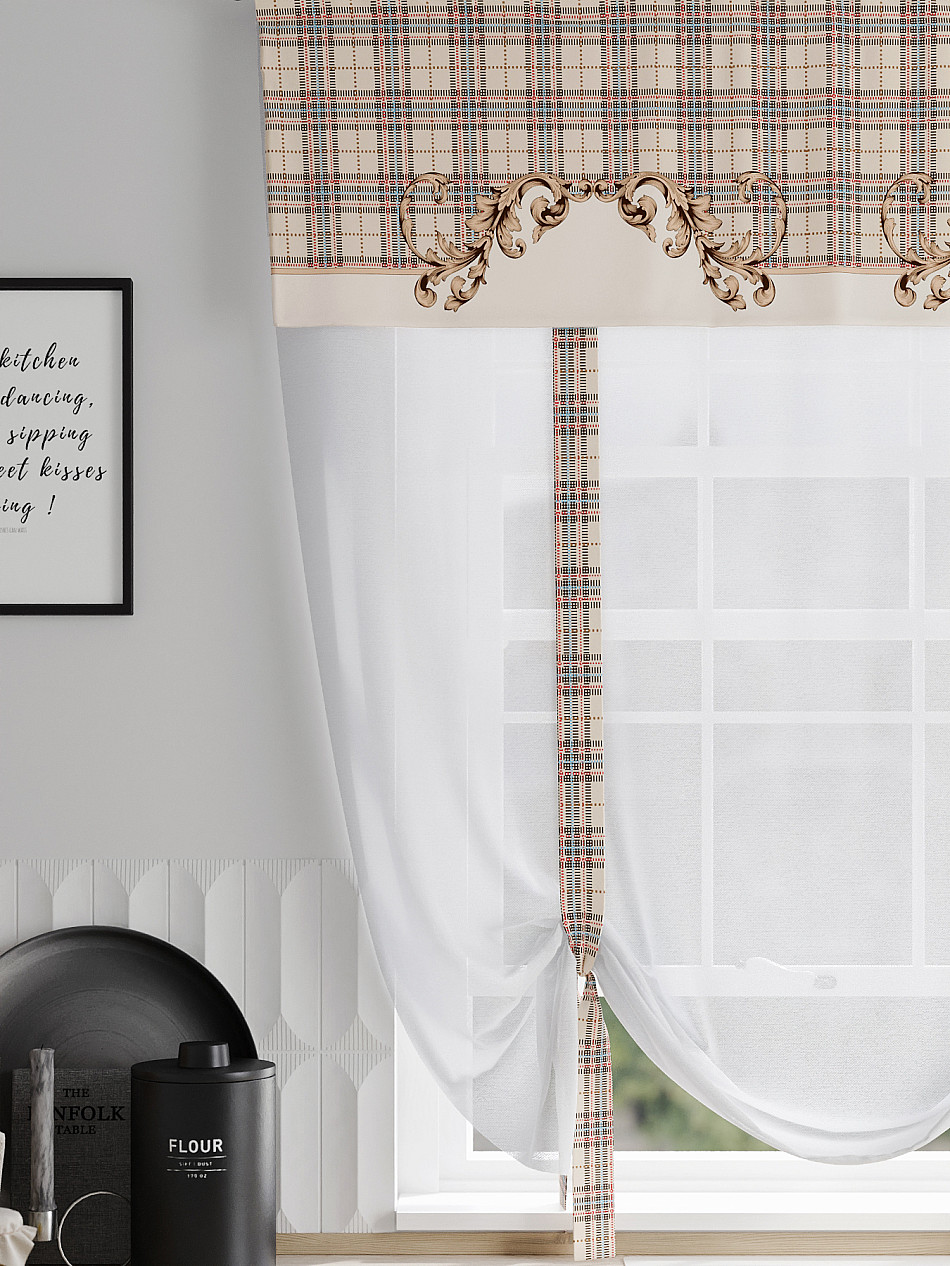 ВыбратьТюль 1 шт. Легкий, мягкий тюль из вуали дополнен отделкой в виде декоративных завязок и ламбрекеном, оформленным фотопечатью. Тюль имитирует римскую штору. Подъем и опускание осуществляется за счет декоративных лент. Вуаль с матовой полупрозрачной текстурой. Отличается особым шиком, идеально подходит для создания воздушных штор. Придает ощущение свежести, хорошо пропускает воздух. Ткань неприхотлива в уходе, хорошо стирается без разрушения волокон с течением времени за счет высокого кручения нитей.