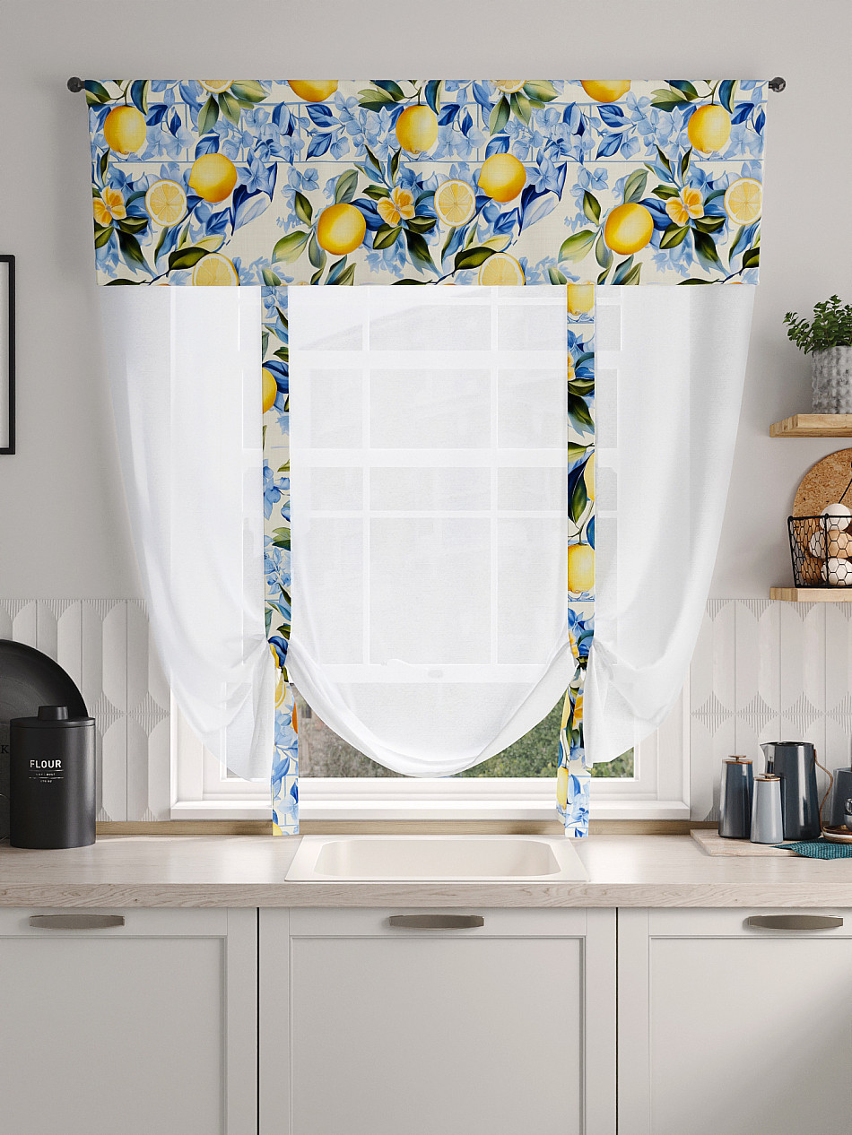 ВыбратьТюль 1 шт. Легкий, мягкий тюль из вуали дополнен отделкой в виде декоративных завязок и ламбрекеном, оформленным фотопечатью. Тюль имитирует римскую штору. Подъем и опускание осуществляется за счет декоративных лент. Вуаль с матовой полупрозрачной текстурой. Отличается особым шиком, идеально подходит для создания воздушных штор. Придает ощущение свежести, хорошо пропускает воздух. Ткань неприхотлива в уходе, хорошо стирается без разрушения волокон с течением времени за счет высокого кручения нитей.