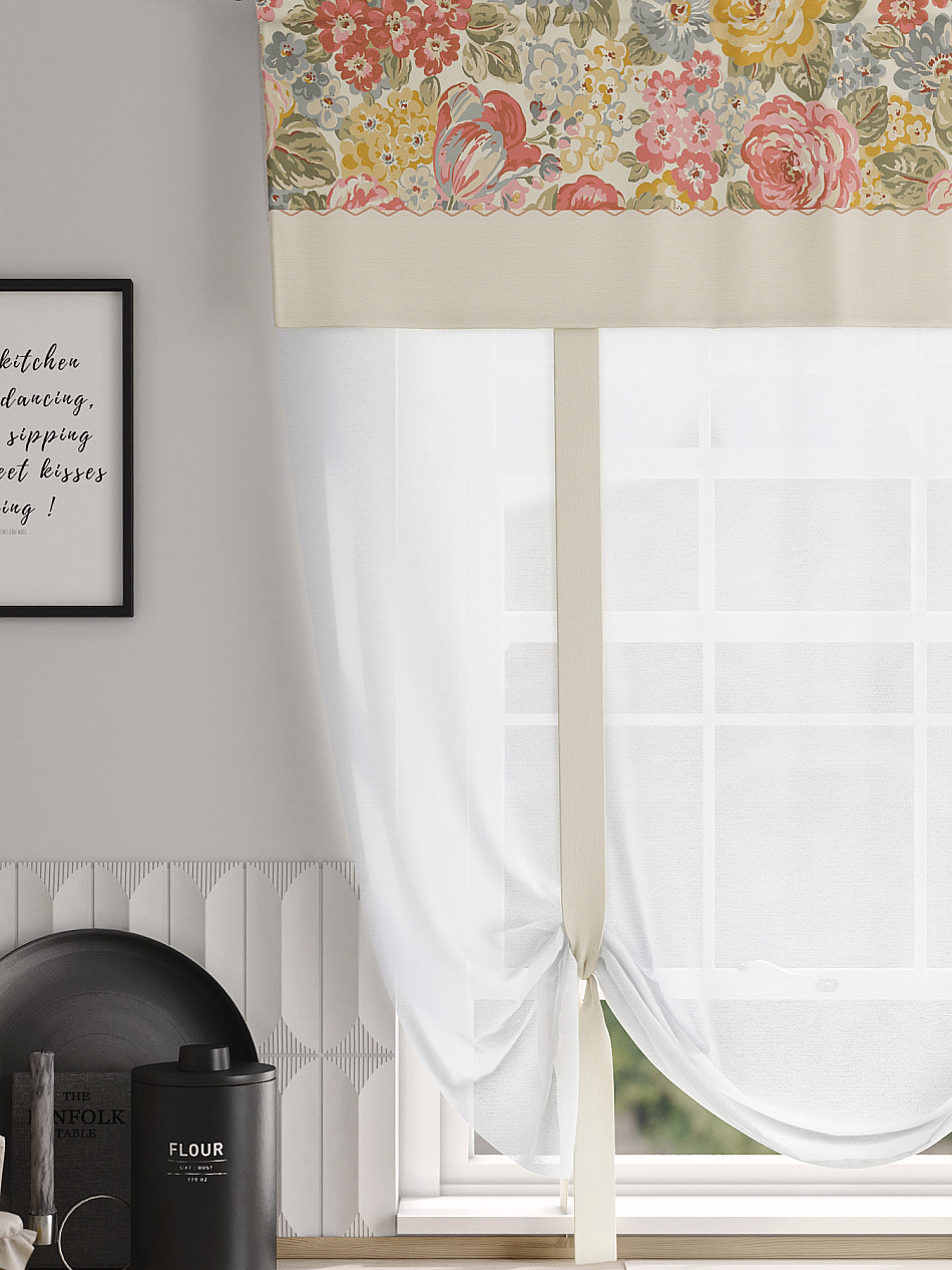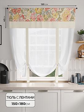 ВыбратьТюль 1 шт. Легкий, мягкий тюль из вуали дополнен отделкой в виде декоративных завязок и ламбрекеном, оформленным фотопечатью. Тюль имитирует римскую штору. Подъем и опускание осуществляется за счет декоративных лент. Вуаль с матовой полупрозрачной текстурой. Отличается особым шиком, идеально подходит для создания воздушных штор. Придает ощущение свежести, хорошо пропускает воздух. Ткань неприхотлива в уходе, хорошо стирается без разрушения волокон с течением времени за счет высокого кручения нитей.