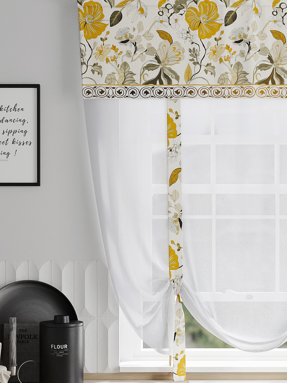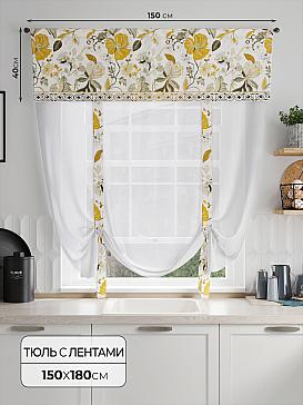 ВыбратьТюль 1 шт. Легкий, мягкий тюль из вуали дополнен отделкой в виде декоративных завязок и ламбрекеном, оформленным фотопечатью. Тюль имитирует римскую штору. Подъем и опускание осуществляется за счет декоративных лент. Вуаль с матовой полупрозрачной текстурой. Отличается особым шиком, идеально подходит для создания воздушных штор. Придает ощущение свежести, хорошо пропускает воздух. Ткань неприхотлива в уходе, хорошо стирается без разрушения волокон с течением времени за счет высокого кручения нитей.