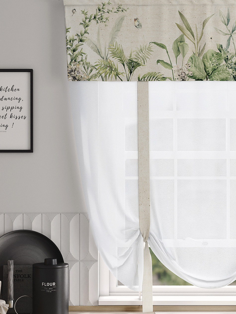 ВыбратьТюль 1 шт. Легкий, мягкий тюль из вуали дополнен отделкой в виде декоративных завязок и ламбрекеном, оформленным фотопечатью. Тюль имитирует римскую штору. Подъем и опускание осуществляется за счет декоративных лент. Вуаль с матовой полупрозрачной текстурой. Отличается особым шиком, идеально подходит для создания воздушных штор. Придает ощущение свежести, хорошо пропускает воздух. Ткань неприхотлива в уходе, хорошо стирается без разрушения волокон с течением времени за счет высокого кручения нитей.