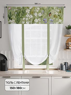ВыбратьТюль 1 шт. Легкий, мягкий тюль из вуали дополнен отделкой в виде декоративных завязок и ламбрекеном, оформленным фотопечатью. Тюль имитирует римскую штору. Подъем и опускание осуществляется за счет декоративных лент. Вуаль с матовой полупрозрачной текстурой. Отличается особым шиком, идеально подходит для создания воздушных штор. Придает ощущение свежести, хорошо пропускает воздух. Ткань неприхотлива в уходе, хорошо стирается без разрушения волокон с течением времени за счет высокого кручения нитей.