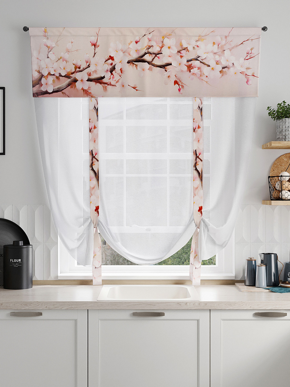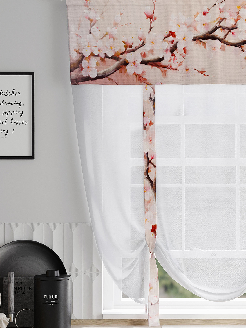 ВыбратьТюль 1 шт. Легкий, мягкий тюль из вуали дополнен отделкой в виде декоративных завязок и ламбрекеном, оформленным фотопечатью. Тюль имитирует римскую штору. Подъем и опускание осуществляется за счет декоративных лент. Вуаль с матовой полупрозрачной текстурой. Отличается особым шиком, идеально подходит для создания воздушных штор. Придает ощущение свежести, хорошо пропускает воздух. Ткань неприхотлива в уходе, хорошо стирается без разрушения волокон с течением времени за счет высокого кручения нитей.