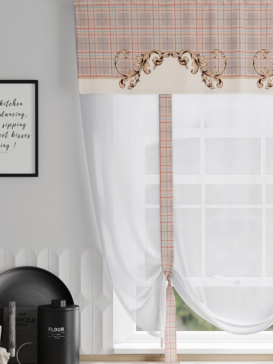 ВыбратьТюль 1 шт. Легкий, мягкий тюль из вуали дополнен отделкой в виде декоративных завязок и ламбрекеном, оформленным фотопечатью. Тюль имитирует римскую штору. Подъем и опускание осуществляется за счет декоративных лент. Вуаль с матовой полупрозрачной текстурой. Отличается особым шиком, идеально подходит для создания воздушных штор. Придает ощущение свежести, хорошо пропускает воздух. Ткань неприхотлива в уходе, хорошо стирается без разрушения волокон с течением времени за счет высокого кручения нитей.