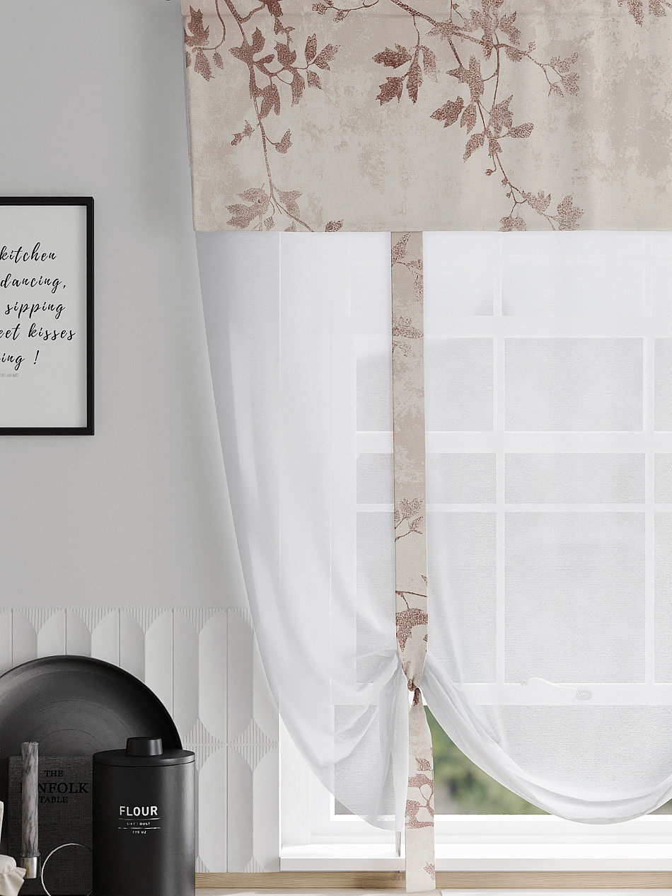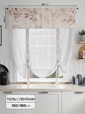 ВыбратьТюль 1 шт. Легкий, мягкий тюль из вуали дополнен отделкой в виде декоративных завязок и ламбрекеном, оформленным фотопечатью. Тюль имитирует римскую штору. Подъем и опускание осуществляется за счет декоративных лент. Вуаль с матовой полупрозрачной текстурой. Отличается особым шиком, идеально подходит для создания воздушных штор. Придает ощущение свежести, хорошо пропускает воздух. Ткань неприхотлива в уходе, хорошо стирается без разрушения волокон с течением времени за счет высокого кручения нитей.