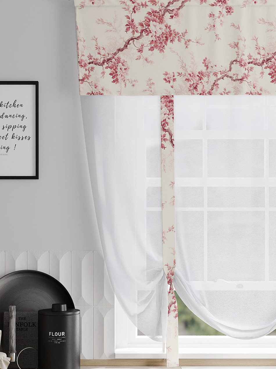 ВыбратьТюль 1 шт. Легкий, мягкий тюль из вуали дополнен отделкой в виде декоративных завязок и ламбрекеном, оформленным фотопечатью. Тюль имитирует римскую штору. Подъем и опускание осуществляется за счет декоративных лент. Вуаль с матовой полупрозрачной текстурой. Отличается особым шиком, идеально подходит для создания воздушных штор. Придает ощущение свежести, хорошо пропускает воздух. Ткань неприхотлива в уходе, хорошо стирается без разрушения волокон с течением времени за счет высокого кручения нитей.