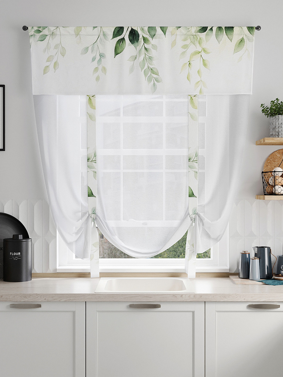 ВыбратьТюль 1 шт. Легкий, мягкий тюль из вуали дополнен отделкой в виде декоративных завязок и ламбрекеном, оформленным фотопечатью. Тюль имитирует римскую штору. Подъем и опускание осуществляется за счет декоративных лент. Вуаль с матовой полупрозрачной текстурой. Отличается особым шиком, идеально подходит для создания воздушных штор. Придает ощущение свежести, хорошо пропускает воздух. Ткань неприхотлива в уходе, хорошо стирается без разрушения волокон с течением времени за счет высокого кручения нитей.