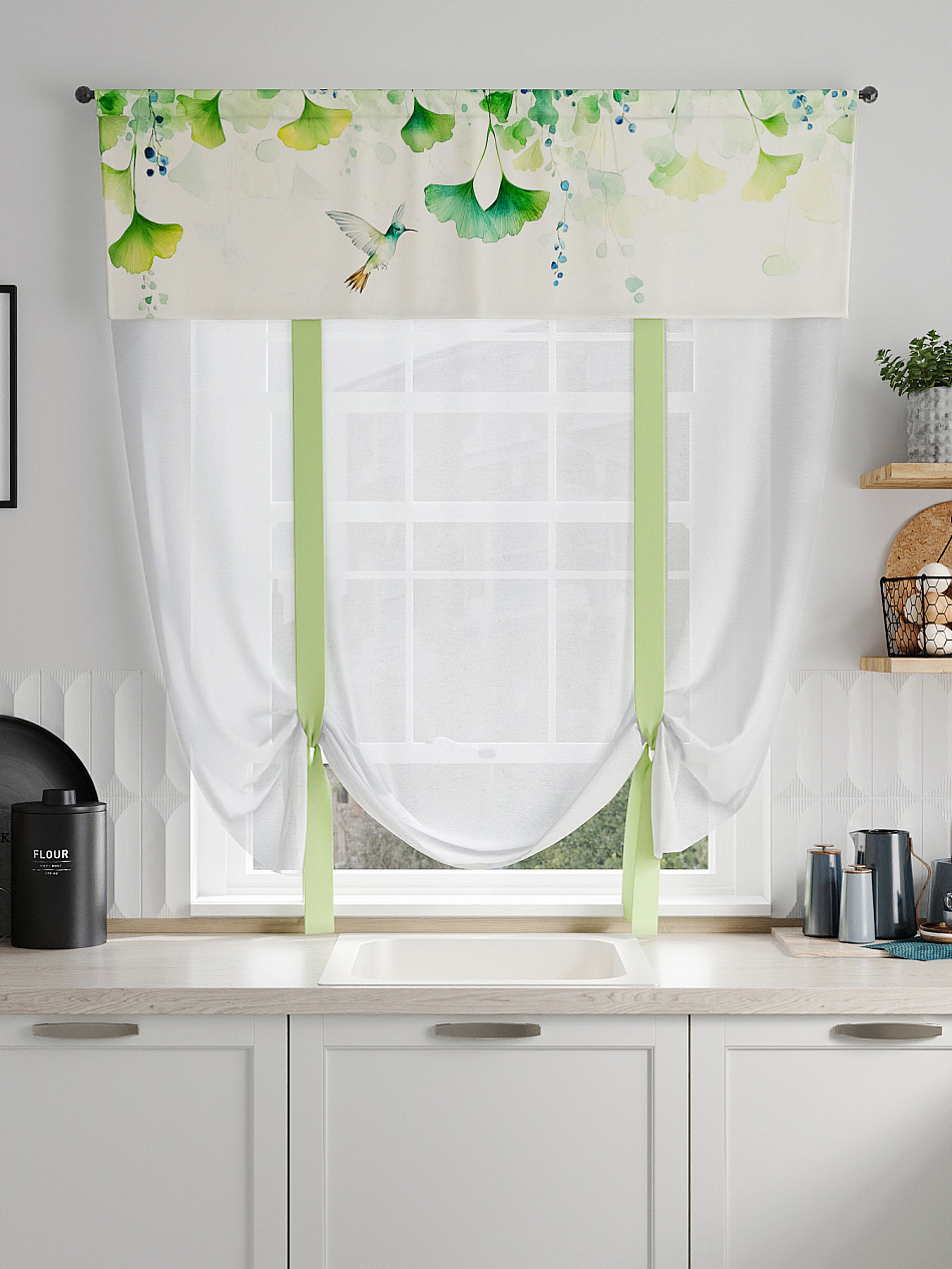 ВыбратьТюль 1 шт. Легкий, мягкий тюль из вуали дополнен отделкой в виде декоративных завязок и ламбрекеном, оформленным фотопечатью. Тюль имитирует римскую штору. Подъем и опускание осуществляется за счет декоративных лент. Вуаль с матовой полупрозрачной текстурой. Отличается особым шиком, идеально подходит для создания воздушных штор. Придает ощущение свежести, хорошо пропускает воздух. Ткань неприхотлива в уходе, хорошо стирается без разрушения волокон с течением времени за счет высокого кручения нитей.