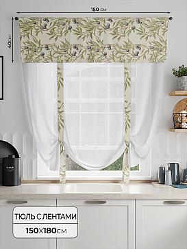 ВыбратьТюль 1 шт. Легкий, мягкий тюль из вуали дополнен отделкой в виде декоративных завязок и ламбрекеном, оформленным фотопечатью. Тюль имитирует римскую штору. Подъем и опускание осуществляется за счет декоративных лент. Вуаль с матовой полупрозрачной текстурой. Отличается особым шиком, идеально подходит для создания воздушных штор. Придает ощущение свежести, хорошо пропускает воздух. Ткань неприхотлива в уходе, хорошо стирается без разрушения волокон с течением времени за счет высокого кручения нитей.