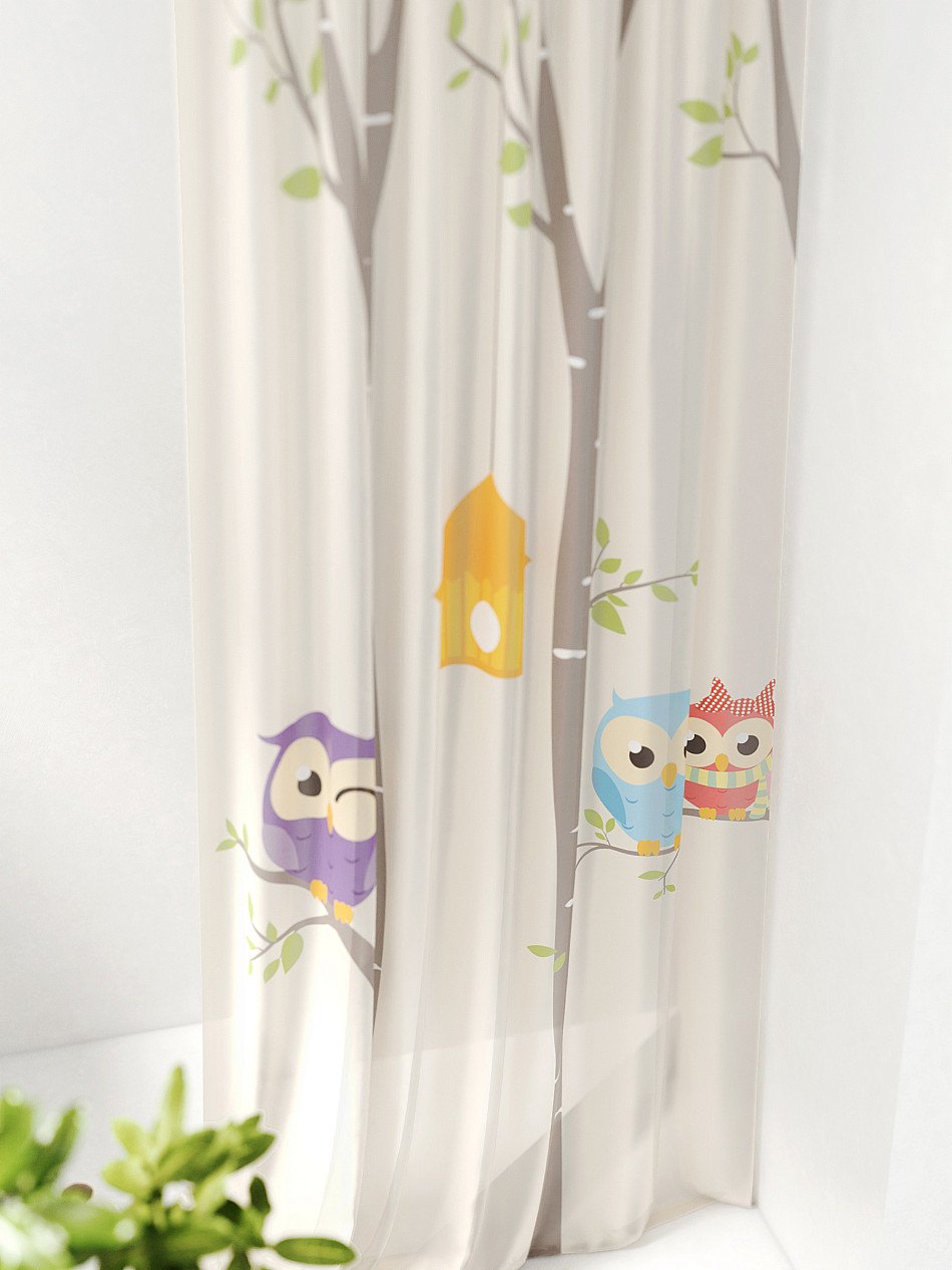 - Вуаль портьера для комнаты с принтом