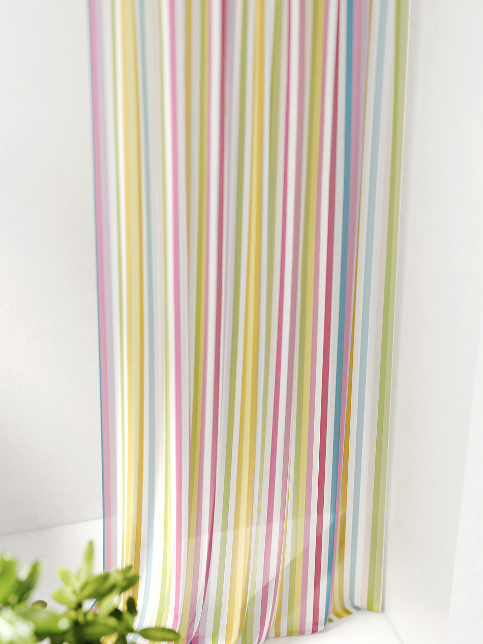 По верхнему краю тюля пришита шторная тесьма 6 см, с ее помощью затянув узелки от кордовых нитей с обеих сторон и стянув их до нужного размера можно сформировать округлые складки, далее вставить крючки в кармашки и повесить на карниз. Обязательно проверьте кордовые нити – они должны быть надежно завязаны, в противном случае во время стягивания они могут вылететь. Шторная тесьма имеет два ряда кармашков, с их помощью можно регулировать не только длину, но и ширину. Такое крепление подходит для всех типов карнизов.