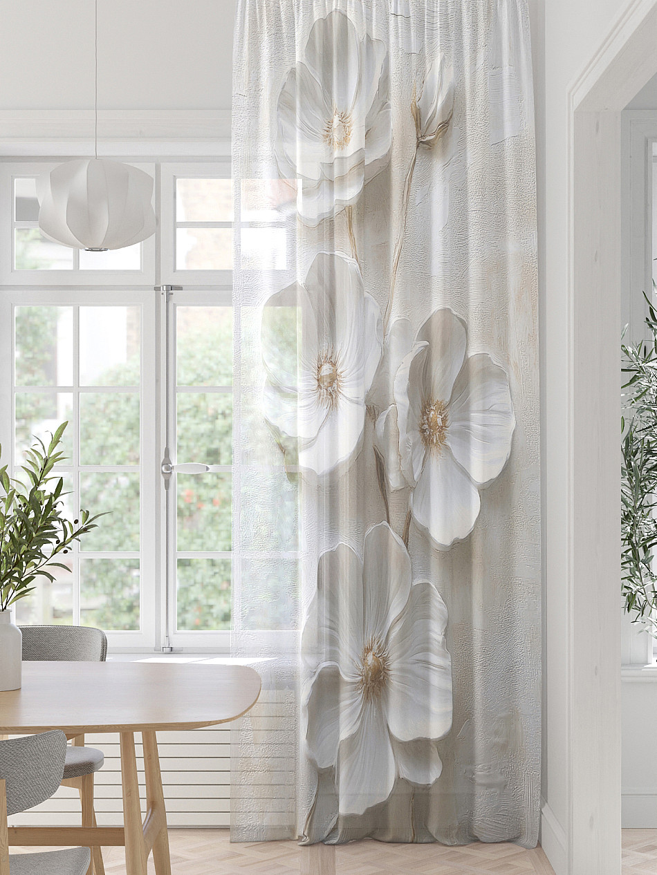 Вуаль – невесомая, практически прозрачная и очень нежная ткань, которая прекрасно смотрится в любом интерьере. Вуалевые шторы изысканны и элегантны как соло, так и в составе шторных ансамблей. Такие гардины придают окну воздушность, легко драпируются, мягко преломляют солнечные лучи и вносят изящество в оформление комнаты. Благодаря широкому ассортименту можно выбрать однотонные вуалевые шторы, либо с орнаментом, с аппликацией или вышивкой, в любом случае ваш выбор будет смотреться красиво и современно.