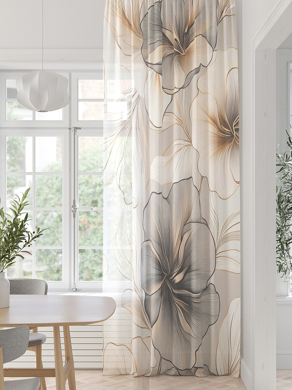Вуаль – невесомая, практически прозрачная и очень нежная ткань, которая прекрасно смотрится в любом интерьере. Вуалевые шторы изысканны и элегантны как соло, так и в составе шторных ансамблей. Такие гардины придают окну воздушность, легко драпируются, мягко преломляют солнечные лучи и вносят изящество в оформление комнаты. Благодаря широкому ассортименту можно выбрать однотонные вуалевые шторы, либо с орнаментом, с аппликацией или вышивкой, в любом случае ваш выбор будет смотреться красиво и современно.