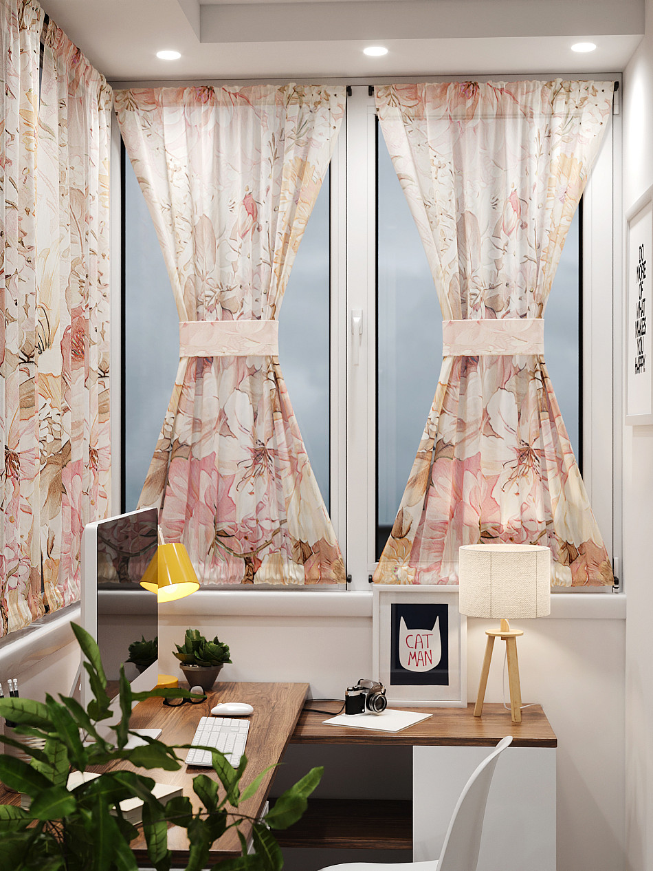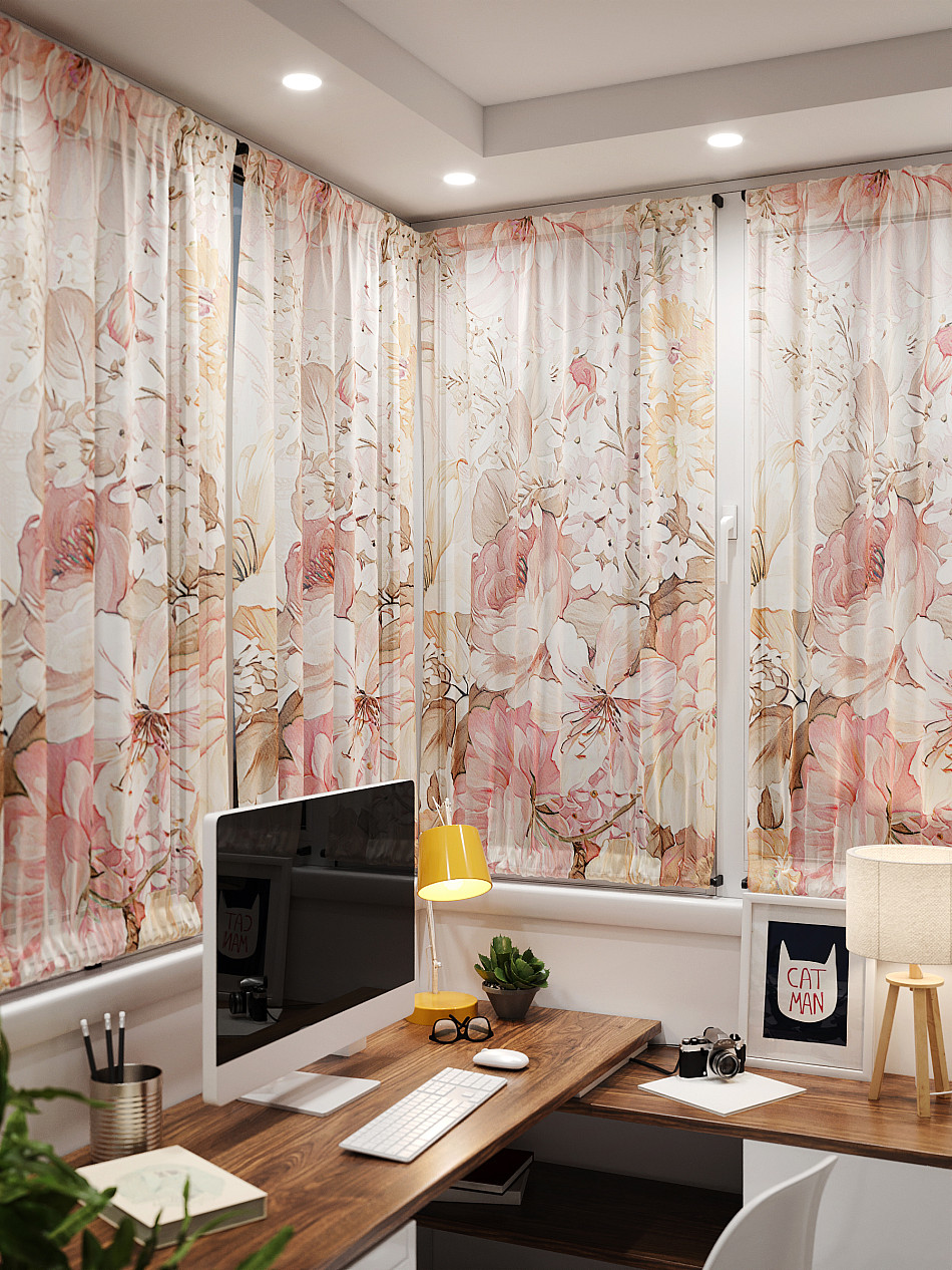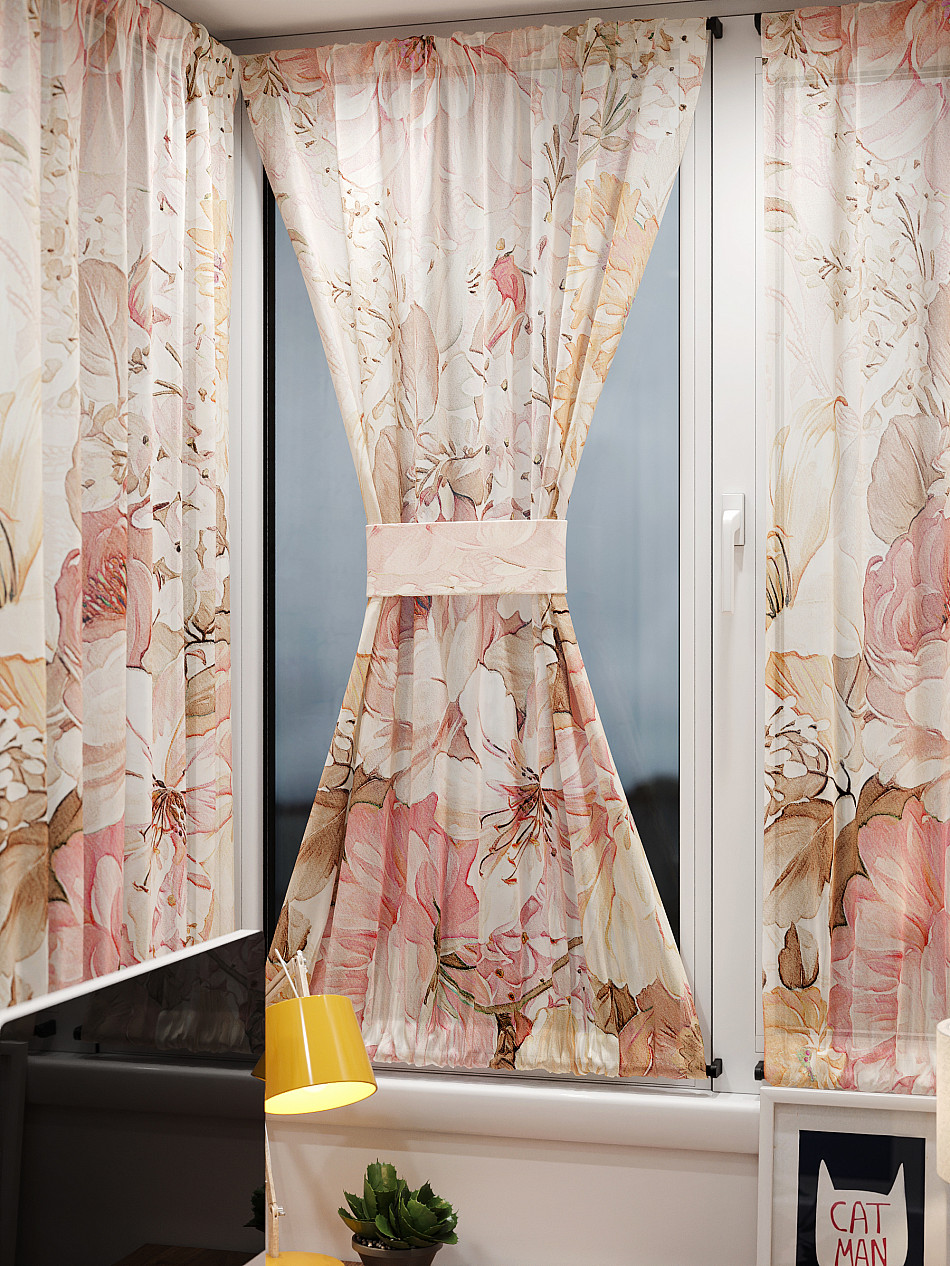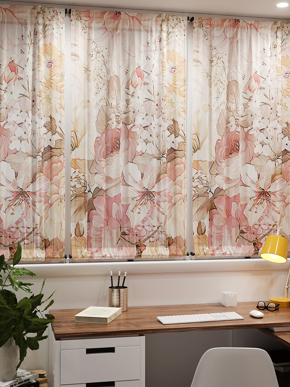 - Вуаль портьера для комнаты с принтом