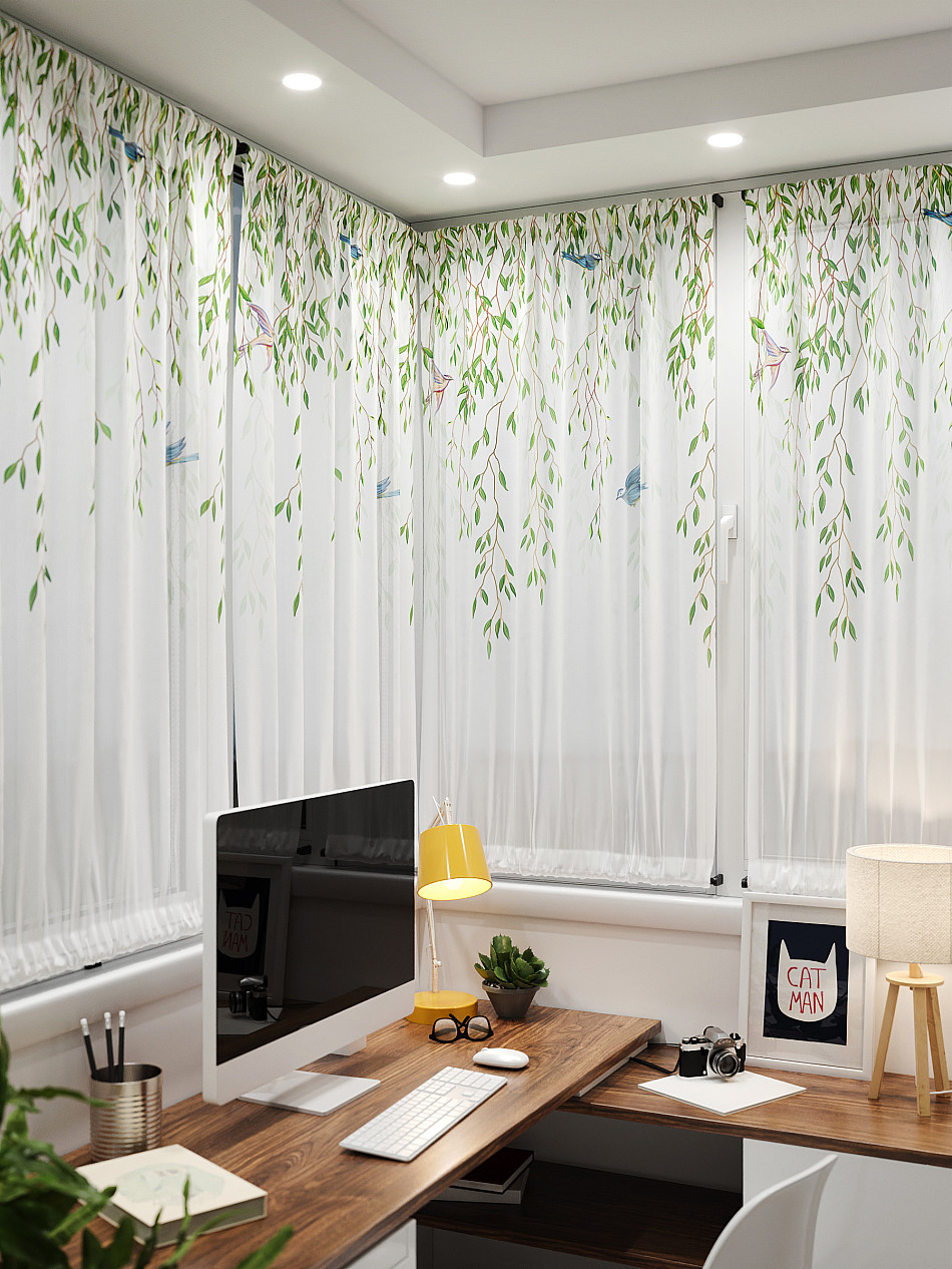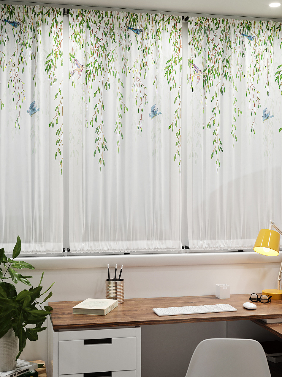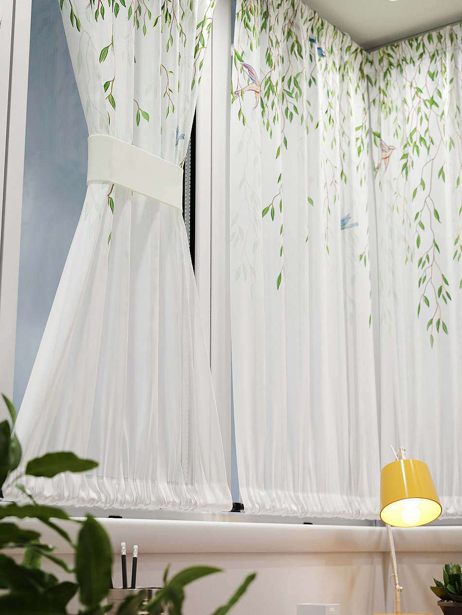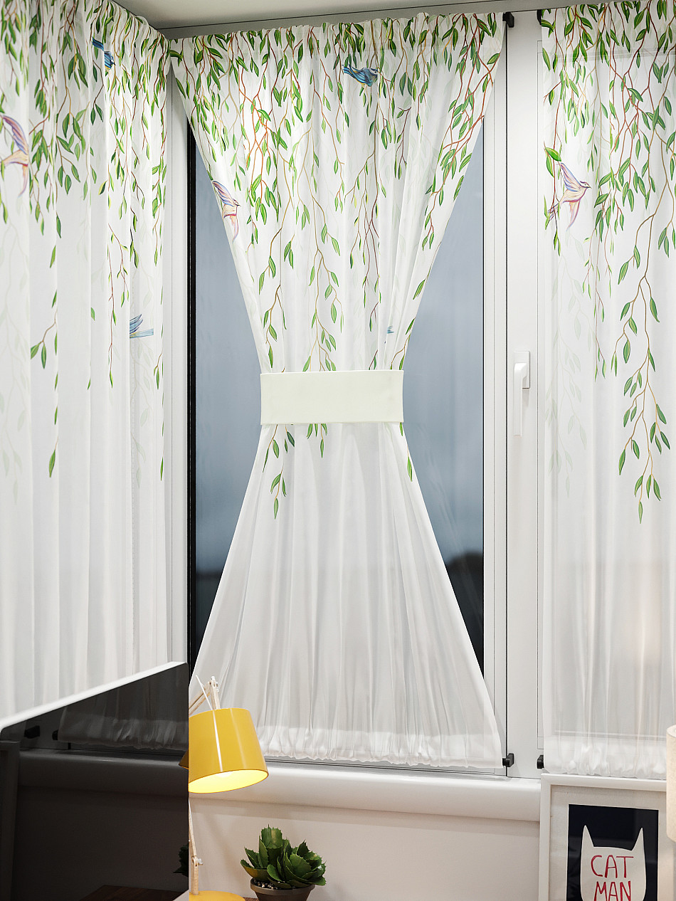 - Вуаль портьера для комнаты с принтом