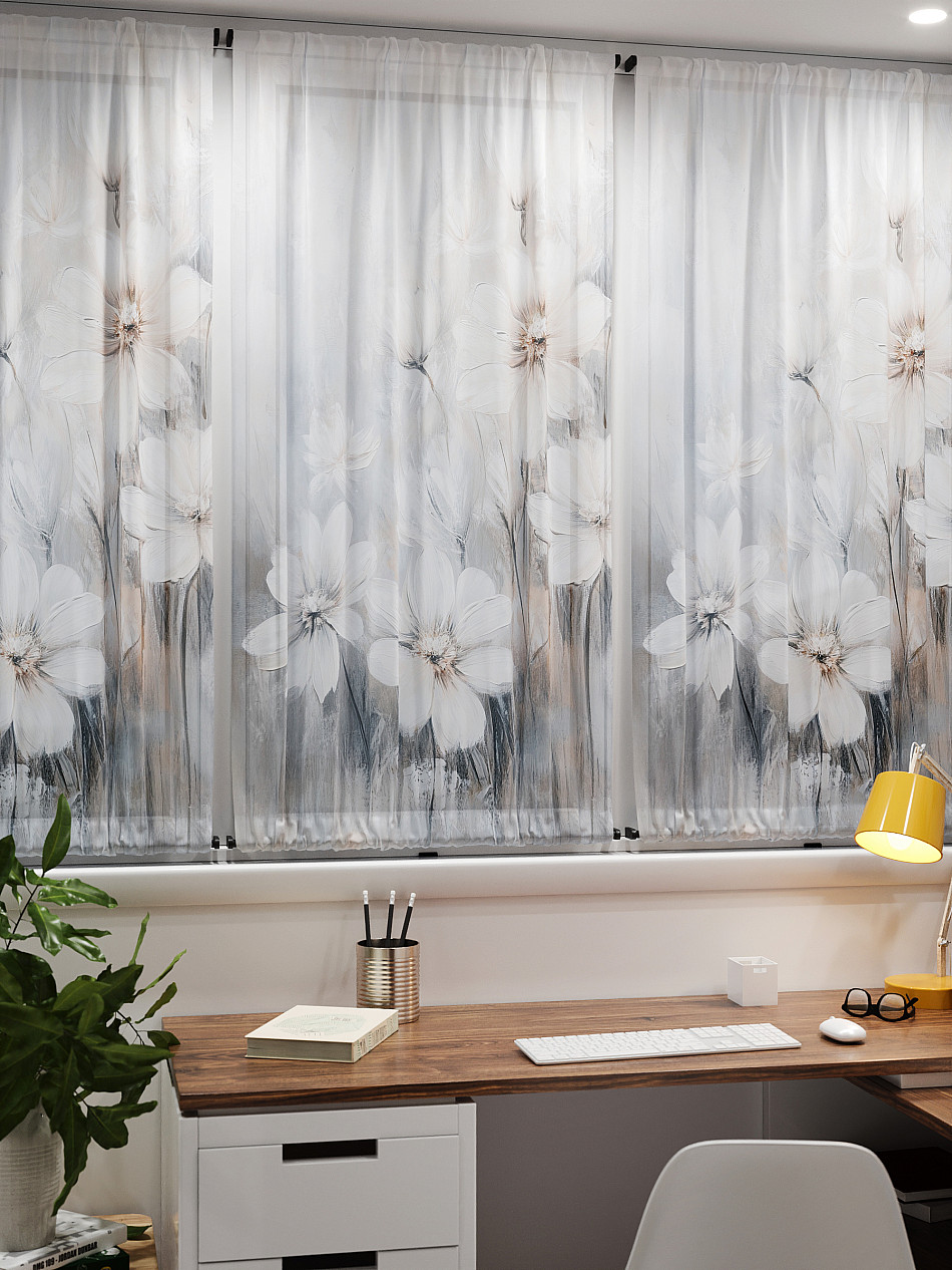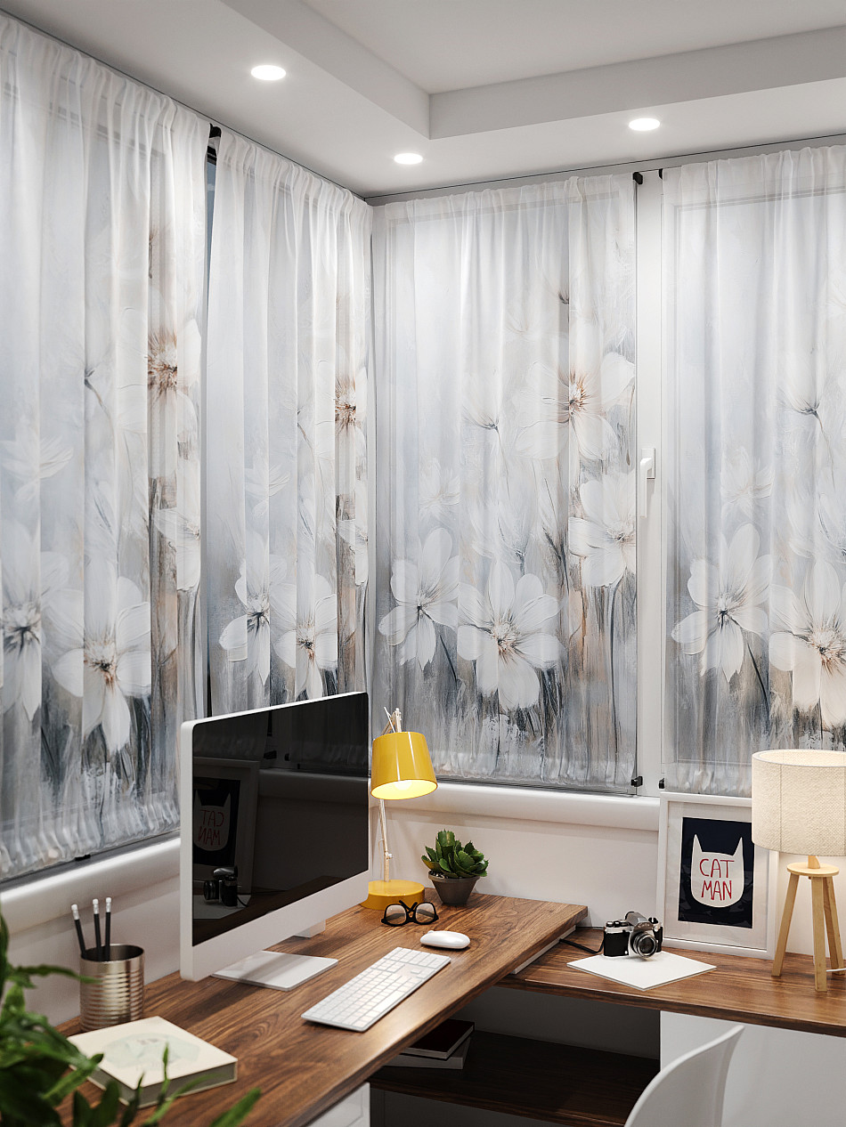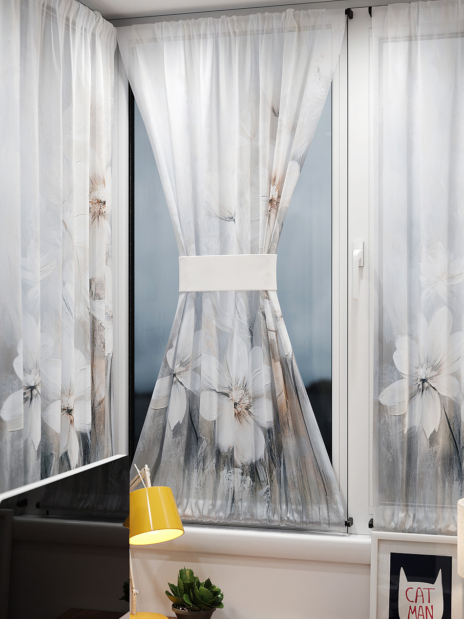 - Вуаль портьера для комнаты с принтом