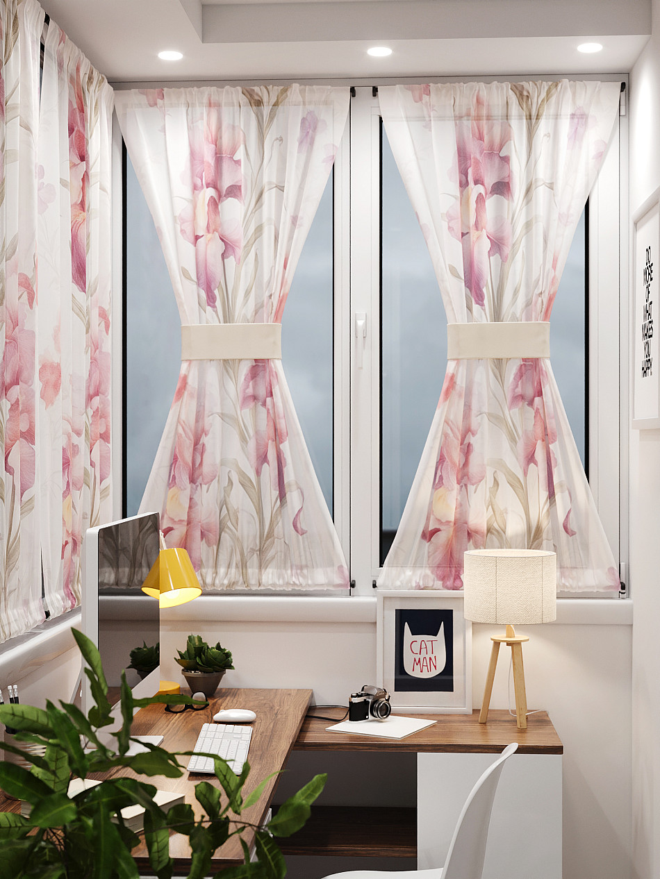 - Вуаль портьера для комнаты с принтом