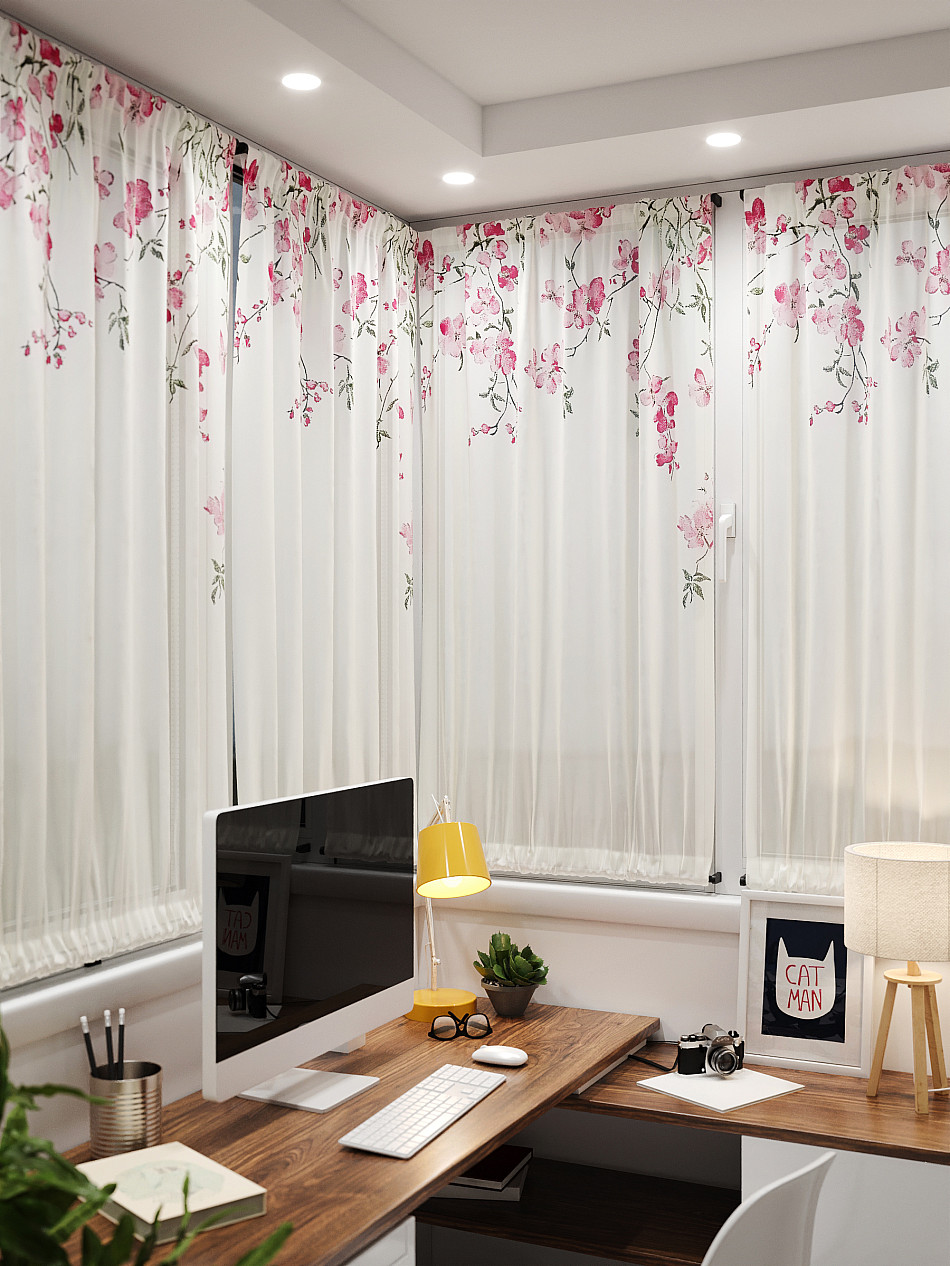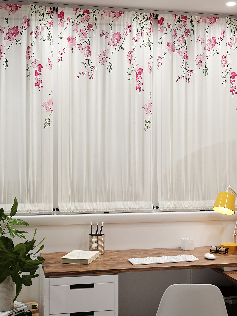 - Вуаль портьера для комнаты с принтом