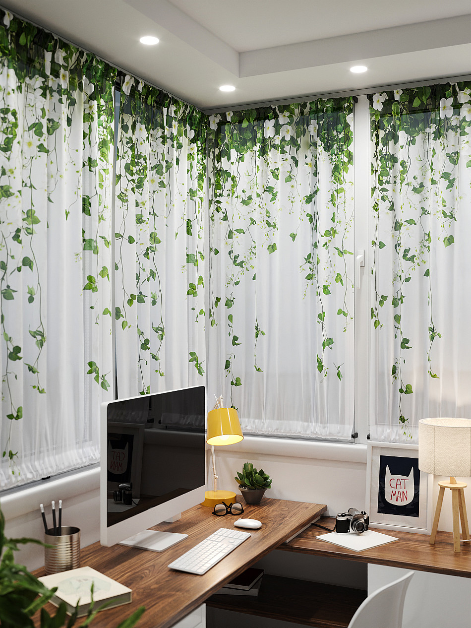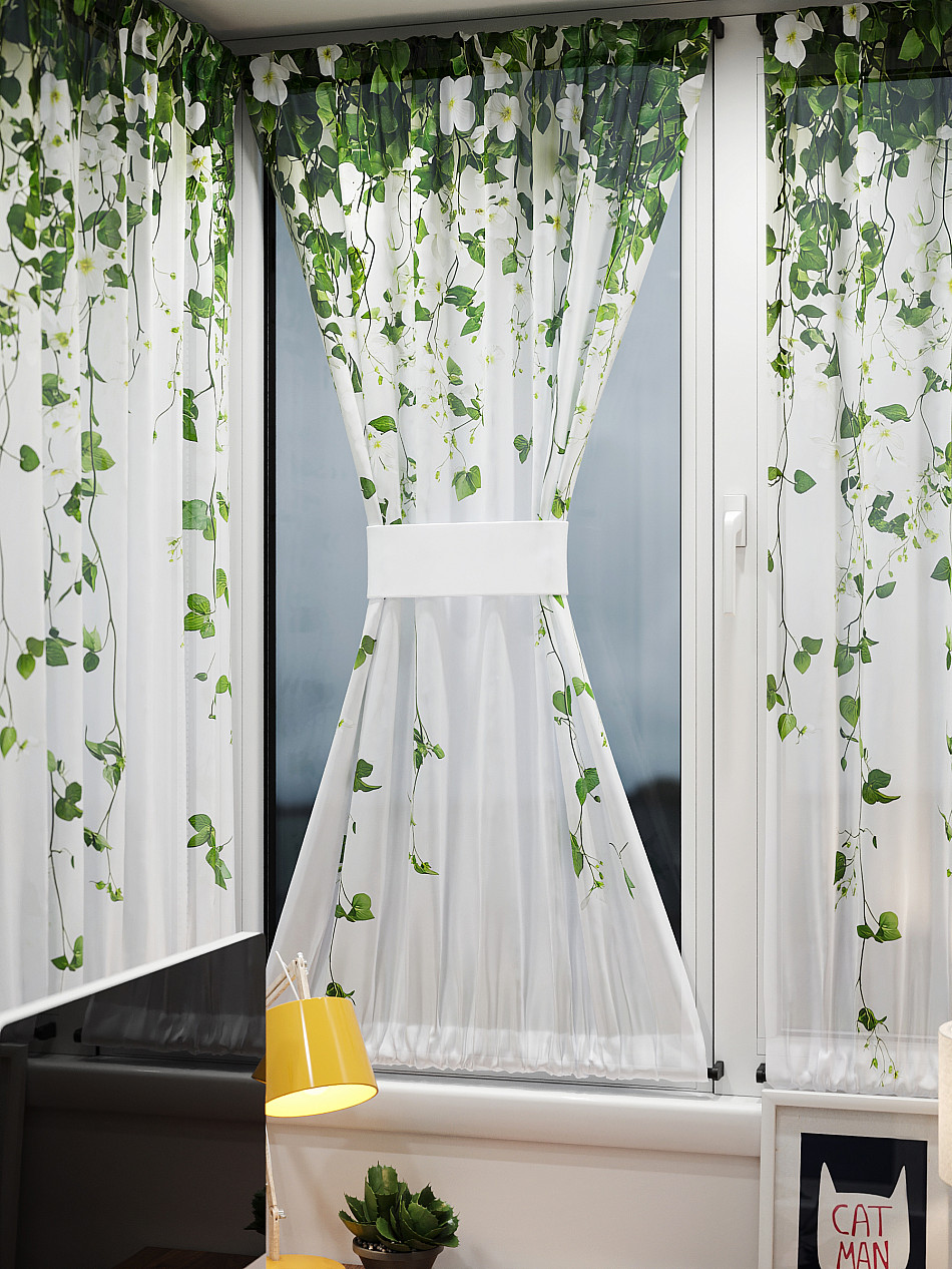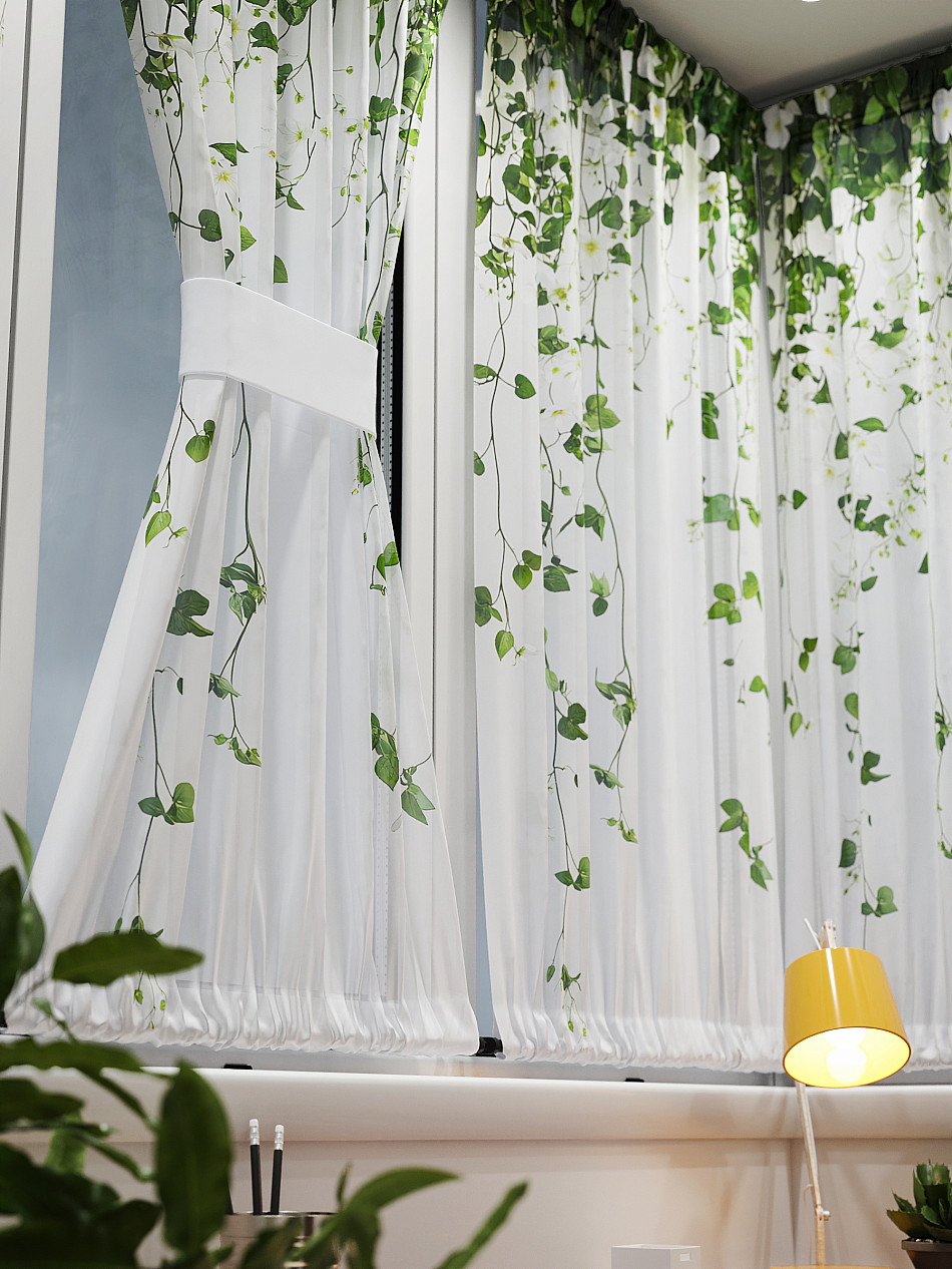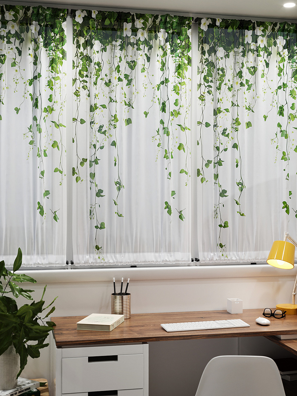 - Вуаль портьера для комнаты с принтом