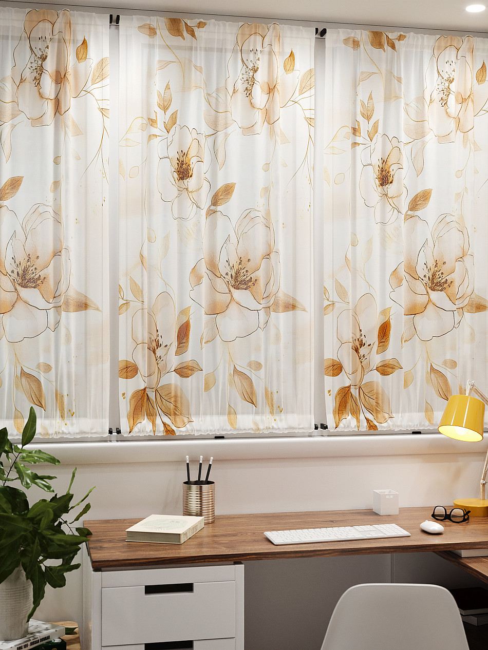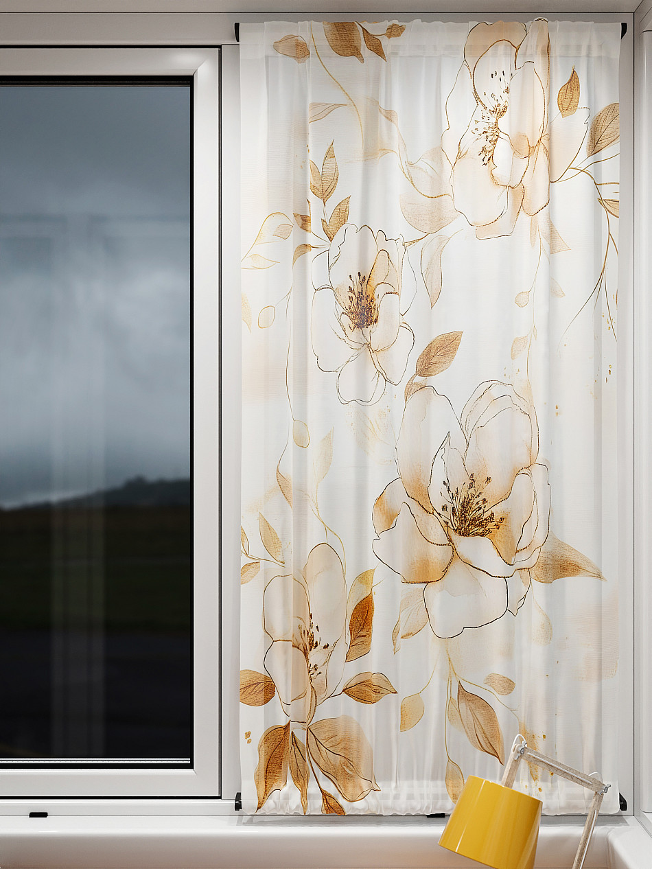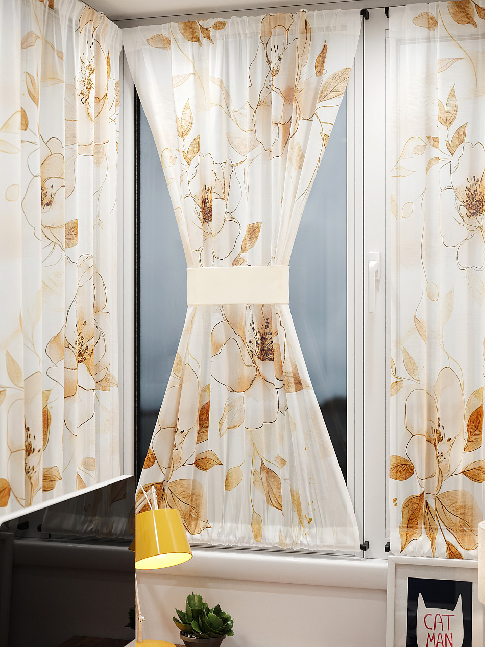 - Вуаль портьера для комнаты с принтом