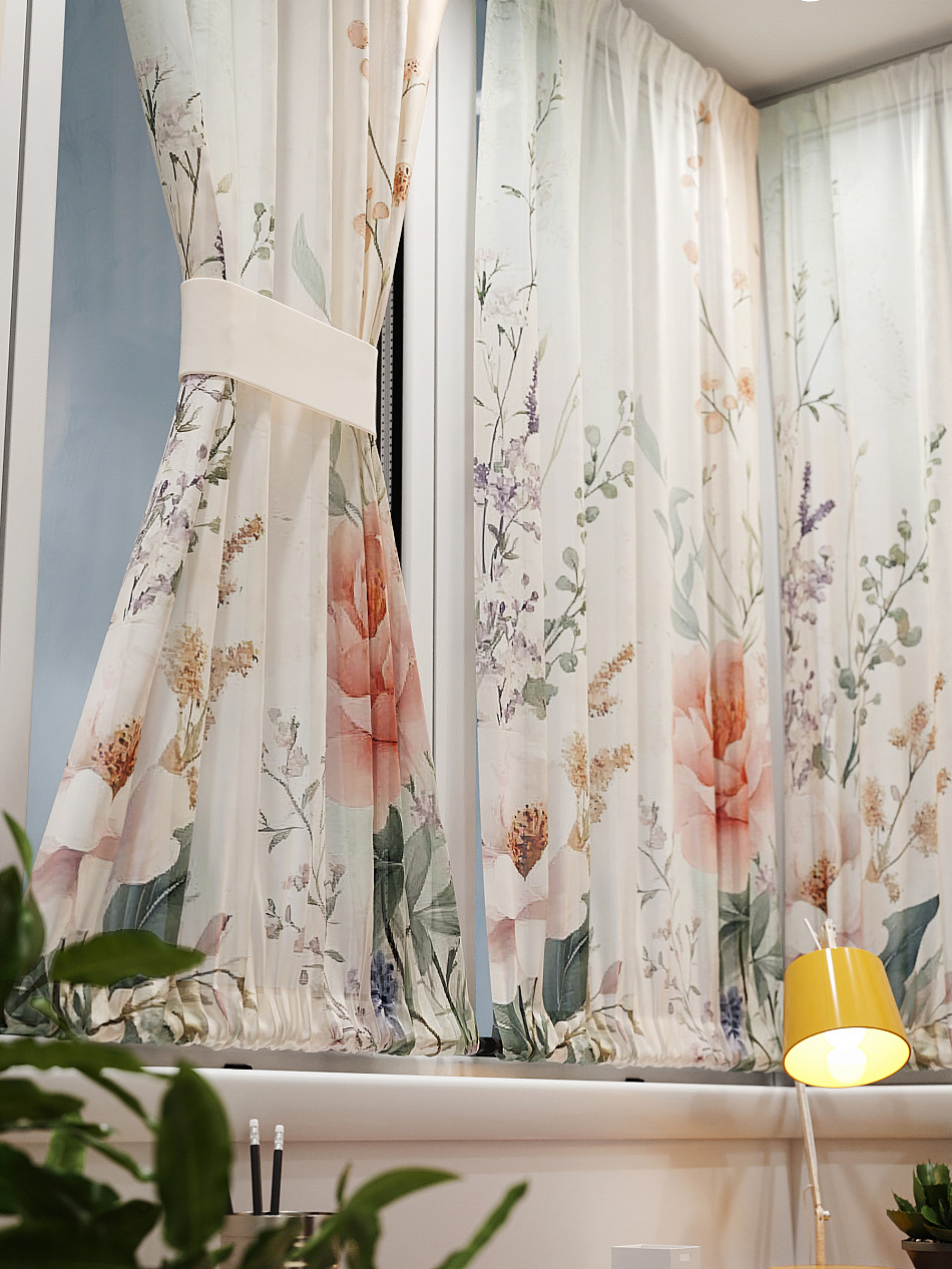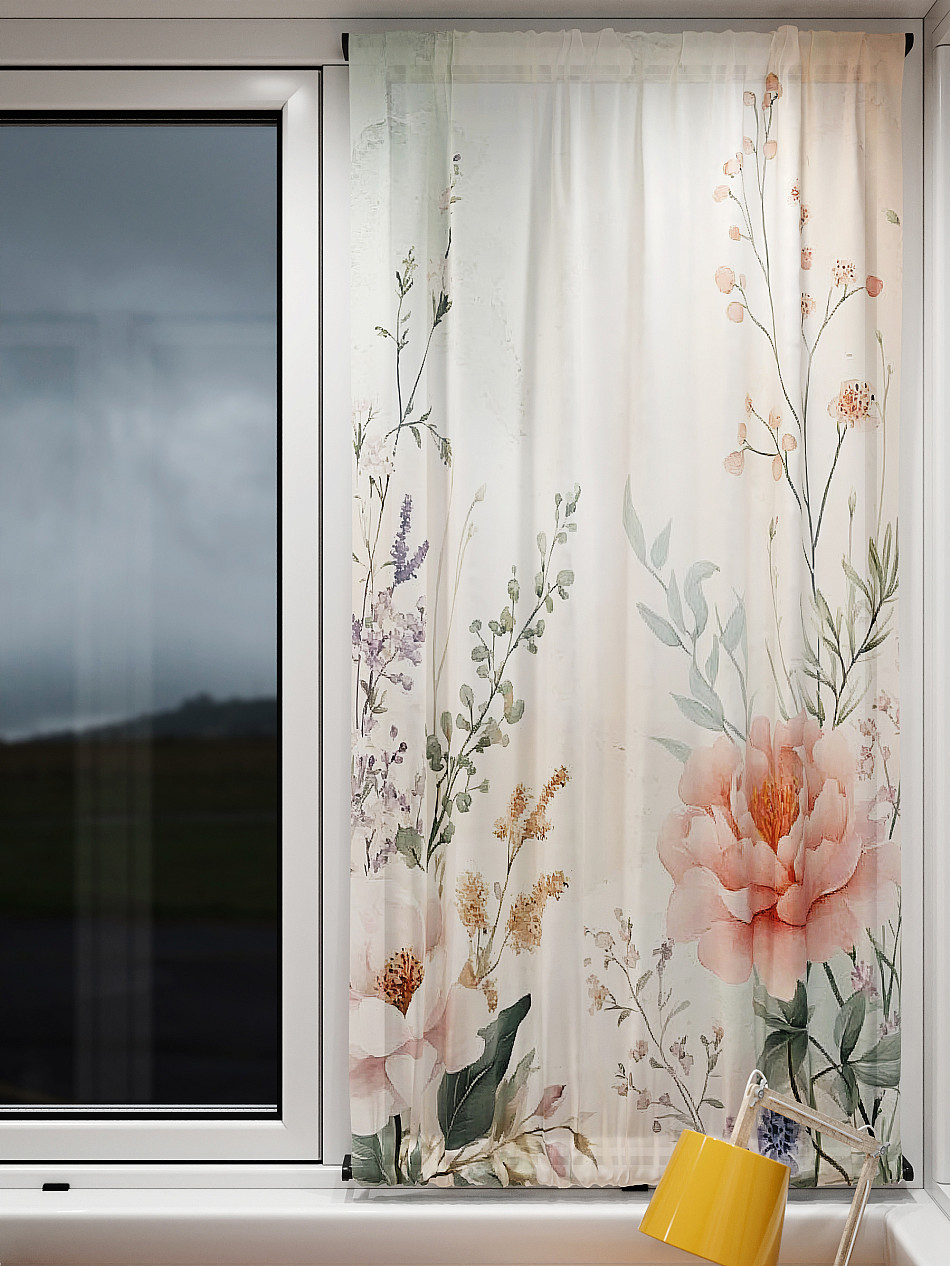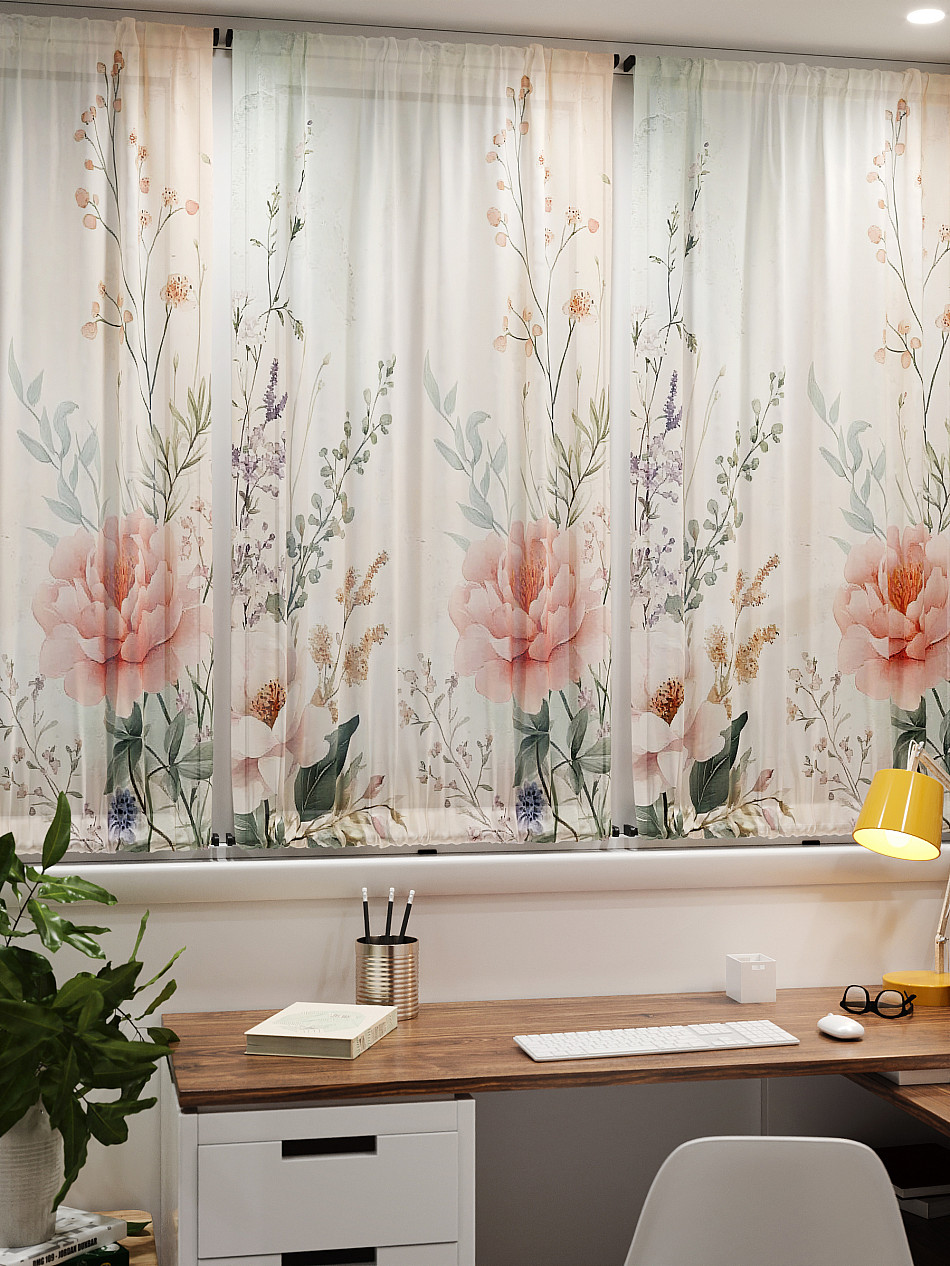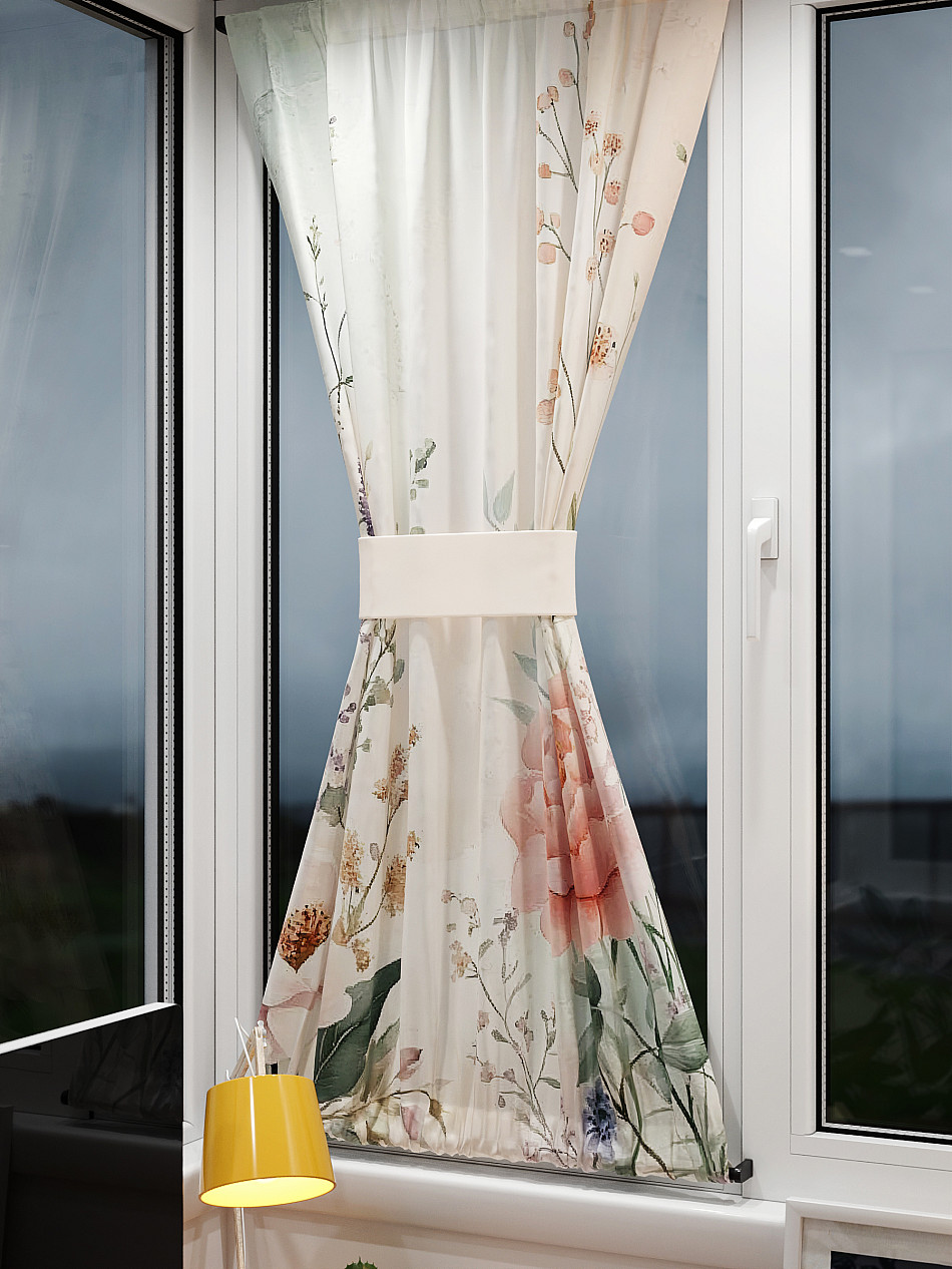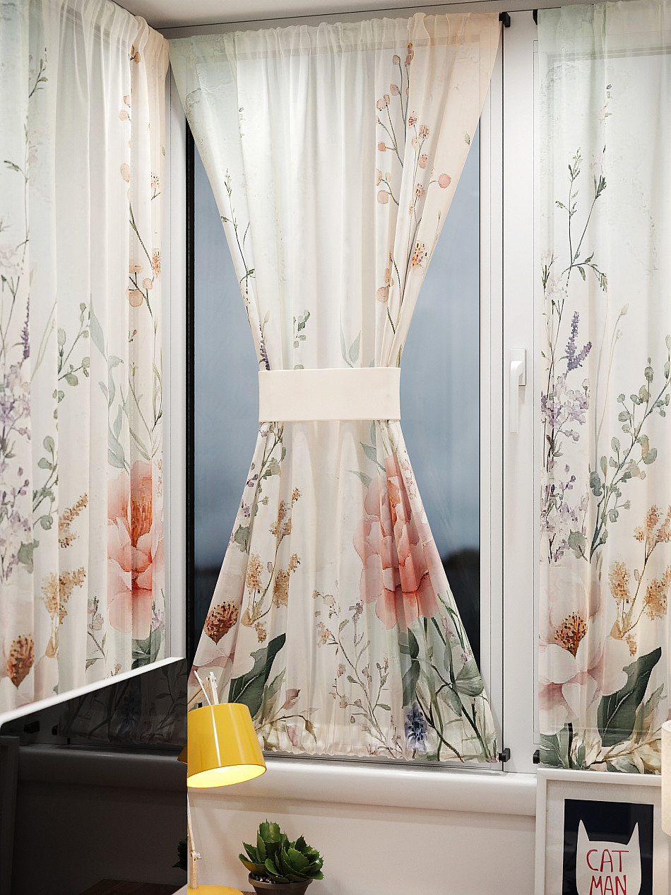 - Вуаль портьера для комнаты с принтом