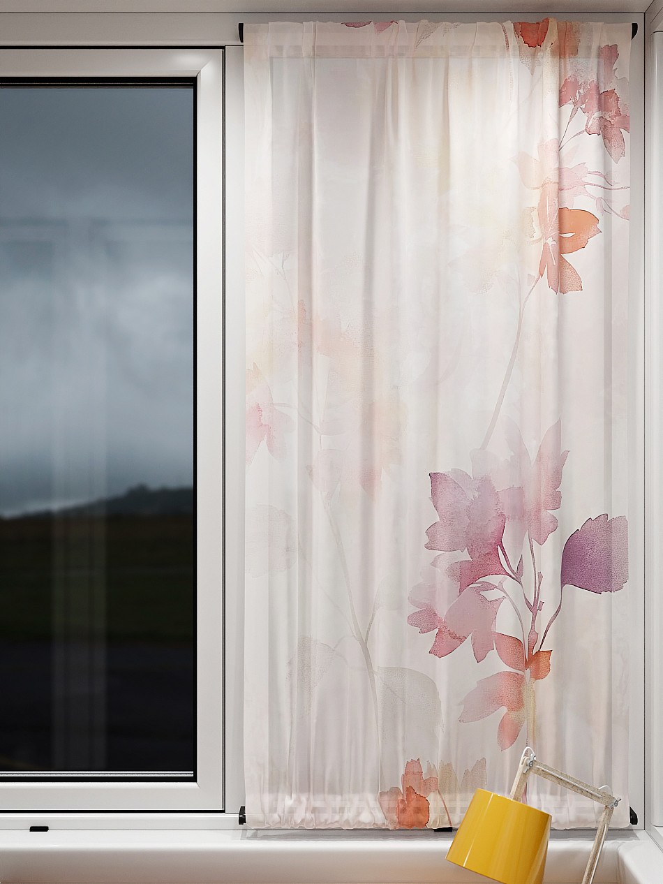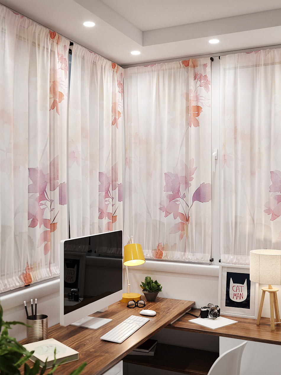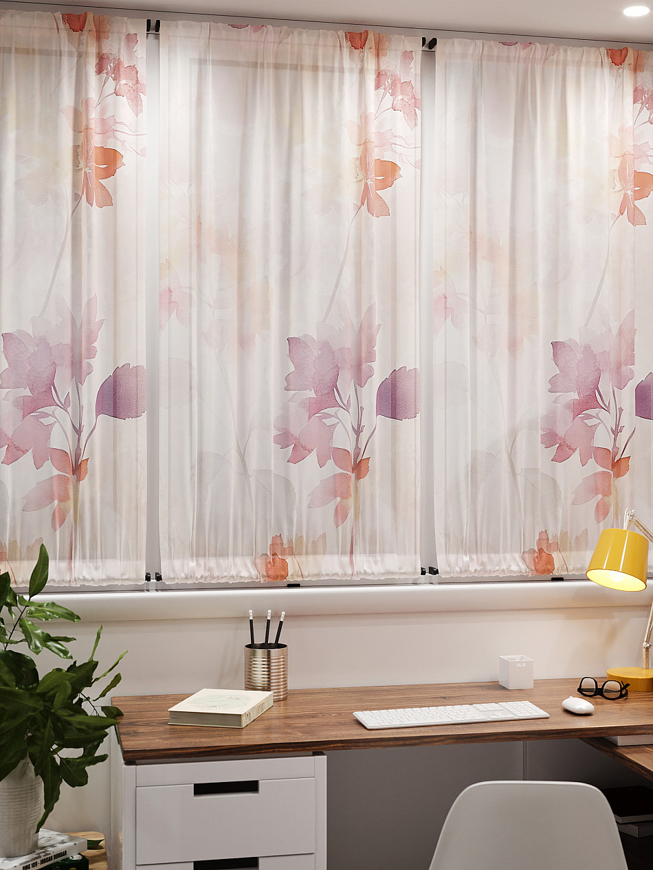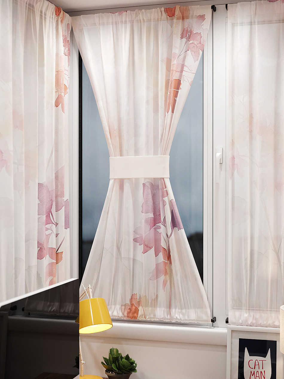 - Вуаль портьера для комнаты с принтом