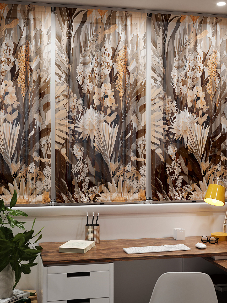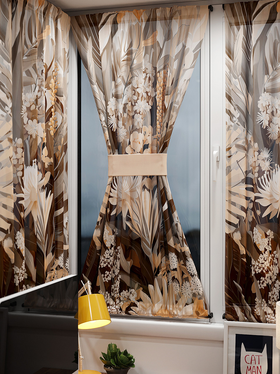 Тюль для балкона, дачи или лоджии имеет эстетически привлекательный вид, выполняя декоративную функцию: насыщенные цвета природных оттенков, создают неповторимую атмосферу уюта. Материал легкий, он имеет высокую плотность, мало загрязнятся и не требует особого ухода даже после стирки. Шторы не выцветают, не растягиваются, превосходно драпируются. Прекрасное решение для создания красоты и уюта с помощью уникальных дизайнов.