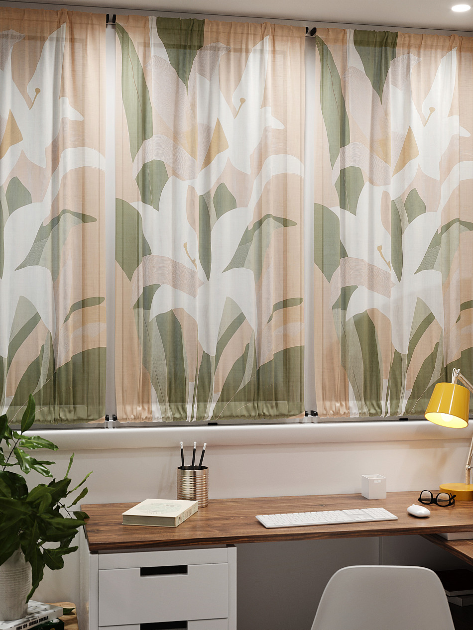 Вуаль – невесомая, практически прозрачная и очень нежная ткань, которая прекрасно смотрится в любом интерьере. Вуалевые шторы изысканны и элегантны как соло, так и в составе шторных ансамблей. Такие гардины придают окну воздушность, легко драпируются, мягко преломляют солнечные лучи и вносят изящество в оформление комнаты. Благодаря широкому ассортименту можно выбрать однотонные вуалевые шторы, либо с орнаментом, с аппликацией или вышивкой, в любом случае ваш выбор будет смотреться красиво и современно.