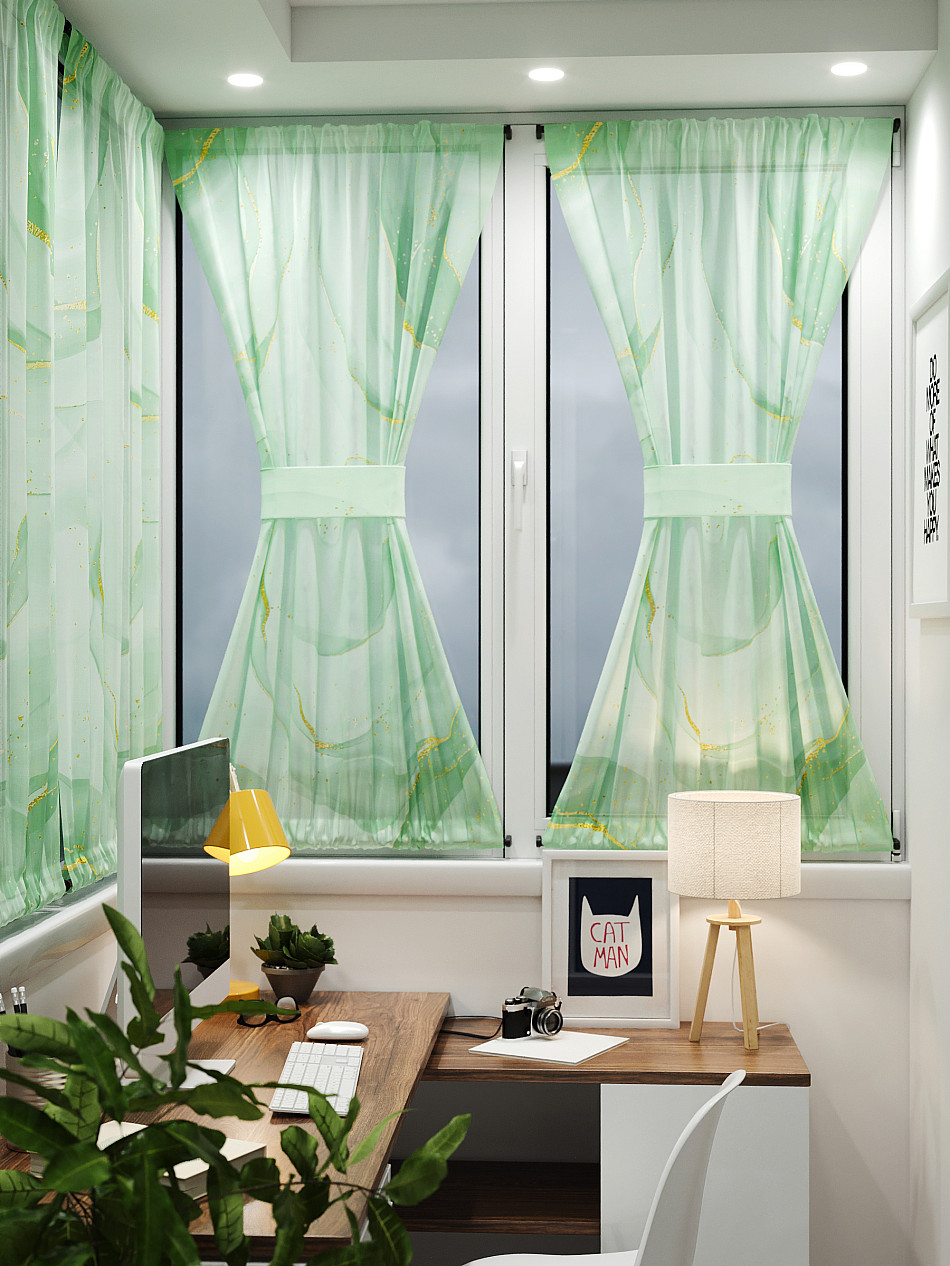 - Вуаль портьеры для кухни с принтом